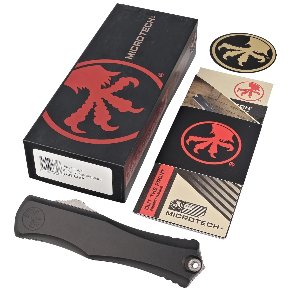 Microtech Hera II D/E OTF Knife Black Aluminum, Apocalyptic M390MK by Tony and Sean Marfione (1702-10AP)