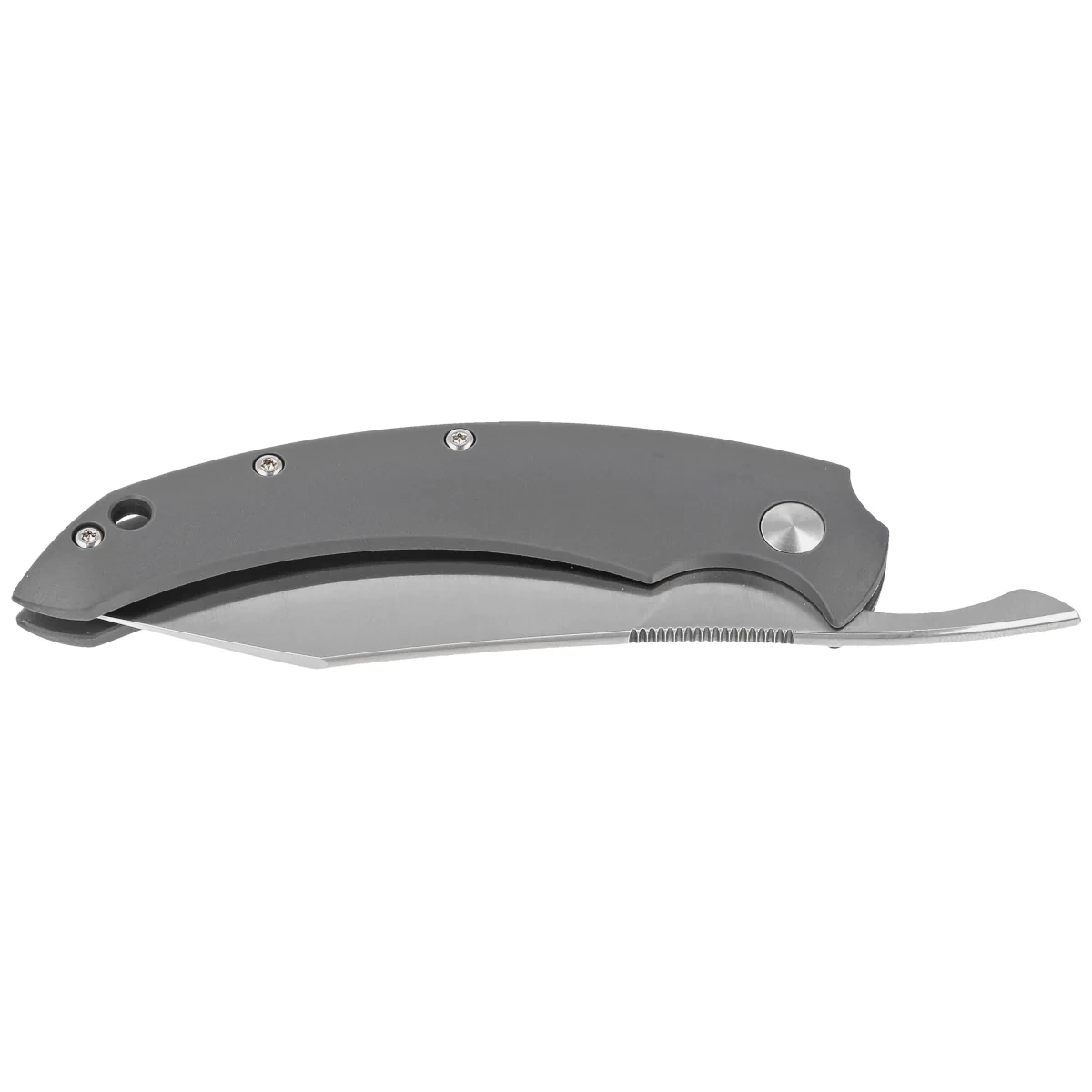Blade - Sheepfoot with an aggressive shape and a slightly marked belly, finished with an elegant satin finish. The massive blade combined with a high flat grind (Flat Grind) gives excellent cutting edge geometry and extreme cutting performance. Smooth operation of the opening mechanism of the blade, which can be opened with a protruding lever, which allows right- and left-handed people to operate the knife.