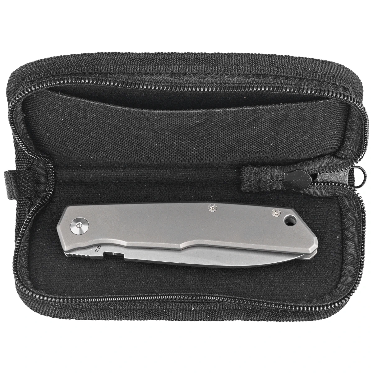 Handle - beveled titanium grips, slightly profiled. Open-backed design - so called open-backed attached to each other with steel spacer sleeves reduces weight and facilitates cleaning. Simple, solid construction gives you the assurance of many years of use. In the back there is a lanyard hole, which is a place for a safety or decorative cord. A single-position (right) titanium clip allows you to carry the knife discreetly in your pocket in tip-up position (blade tip up).