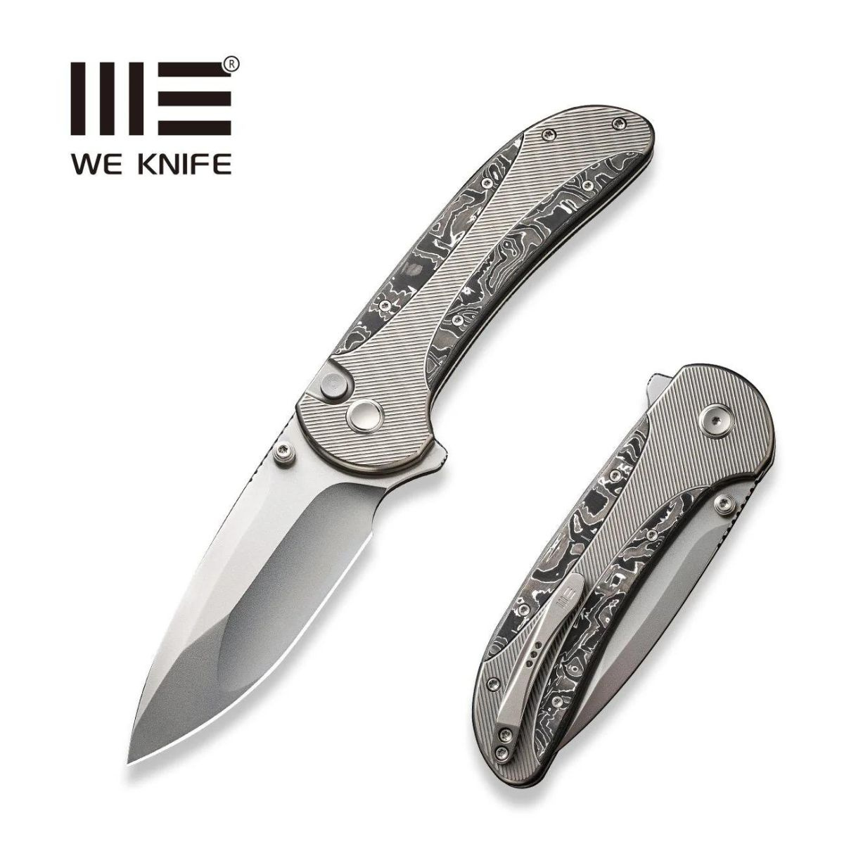 WE Knife Zizzit Grey Titanium/Aluminum Carbon Fiber, Polished Bead Blasted CPM 20CV (WE23031-2)