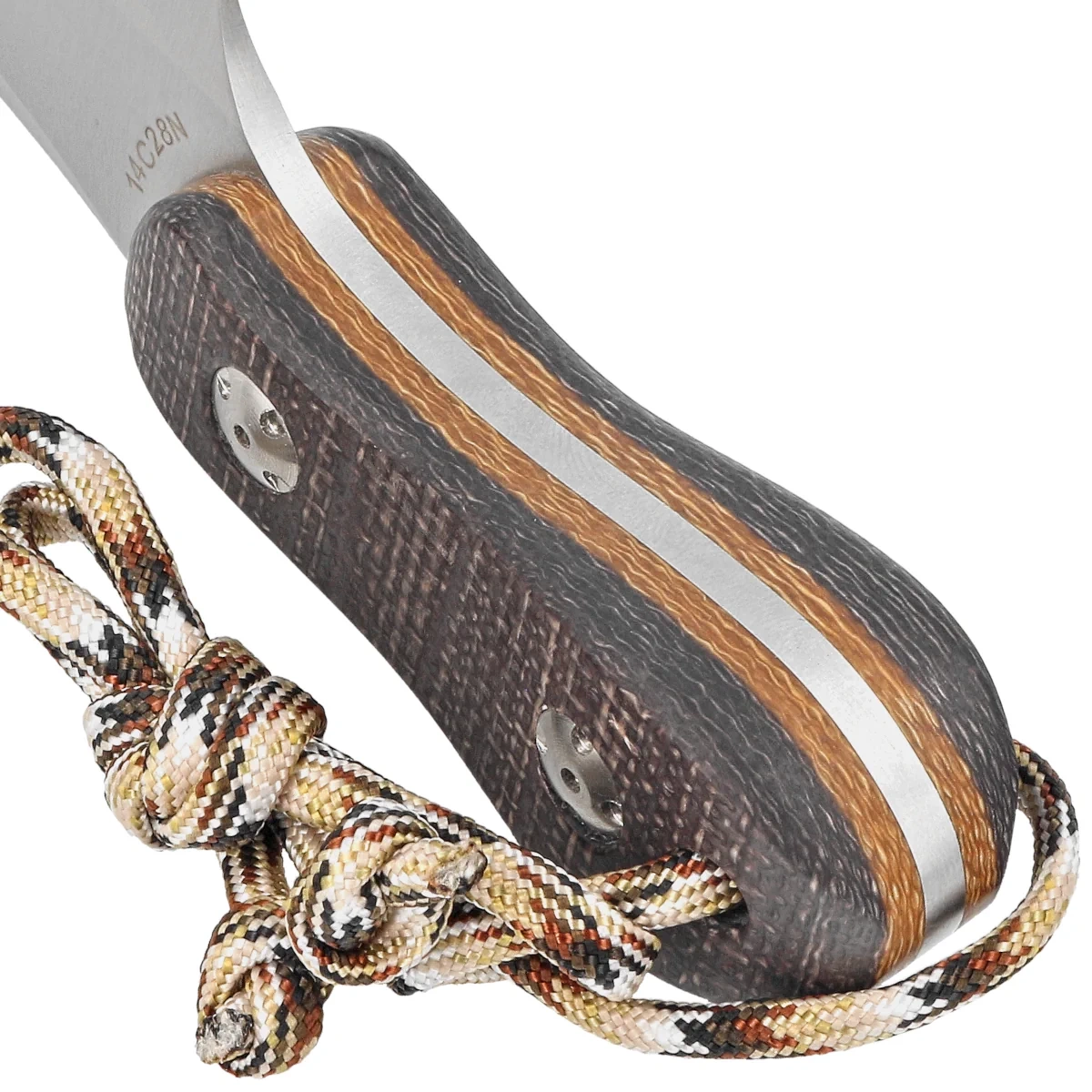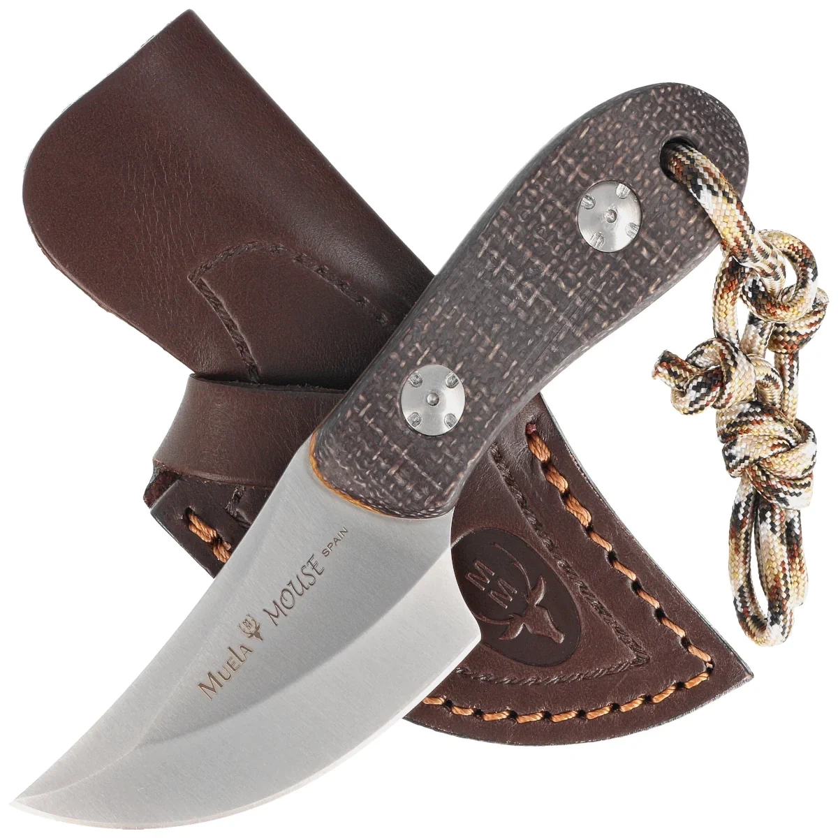 • Muela Mouse-7M Brown Jute Micarta, Satin, straight, compact skinner knife. Satin-finished 14C28N stainless steel blade. Comfortable micarta handle. An excellent helper for hunting, outdoor activities or survival.
