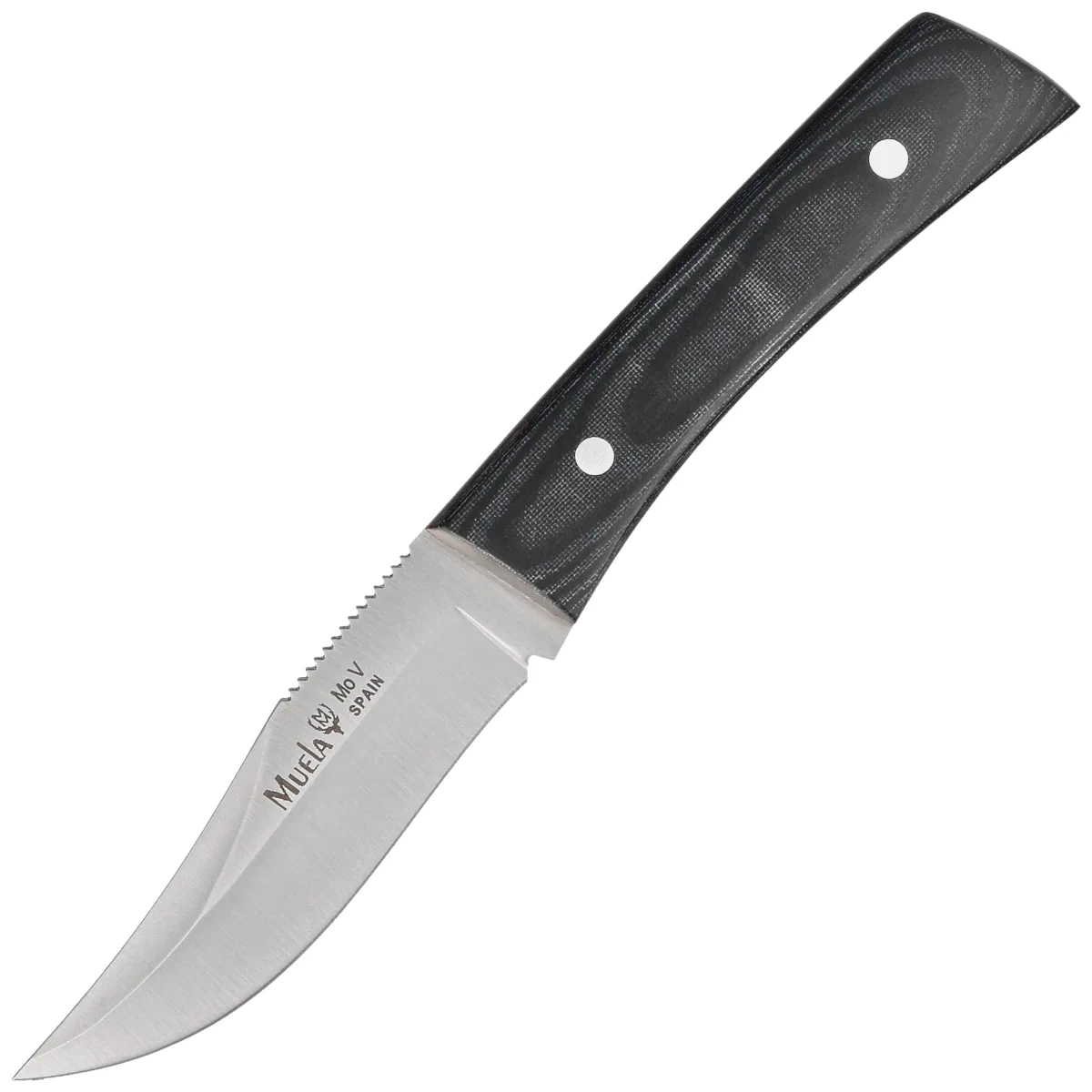 BWE-8M Black Blue Canvas Micarta, Satin, universal compact knife. Satin-finished molybdenum-vanadium (MoVa) stainless steel blade. Comfortable jute micarta handle. An excellent helper for hunting, outdoor activities or survival.