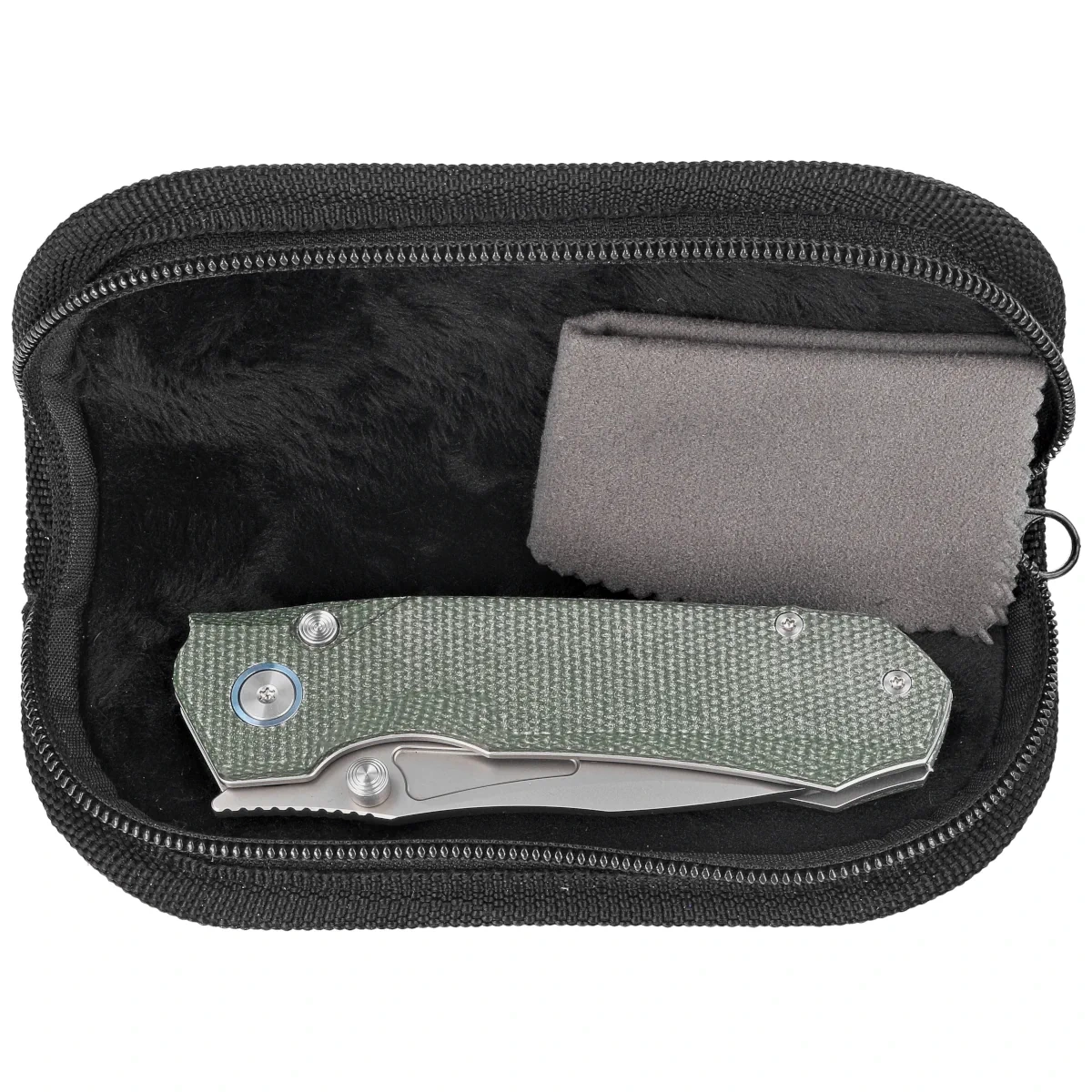 Rhino Military Green Micarta, Stonewashed, an exceptional EDC folding knife that combines excellent functionality with unique style. Three blade deployment modes: with a Button Lock mechanism allowing gravity-assisted opening with a button press, using the front flipper tab, or utilizing the thumb stud on the blade. This is especially useful in situations where every second counts.