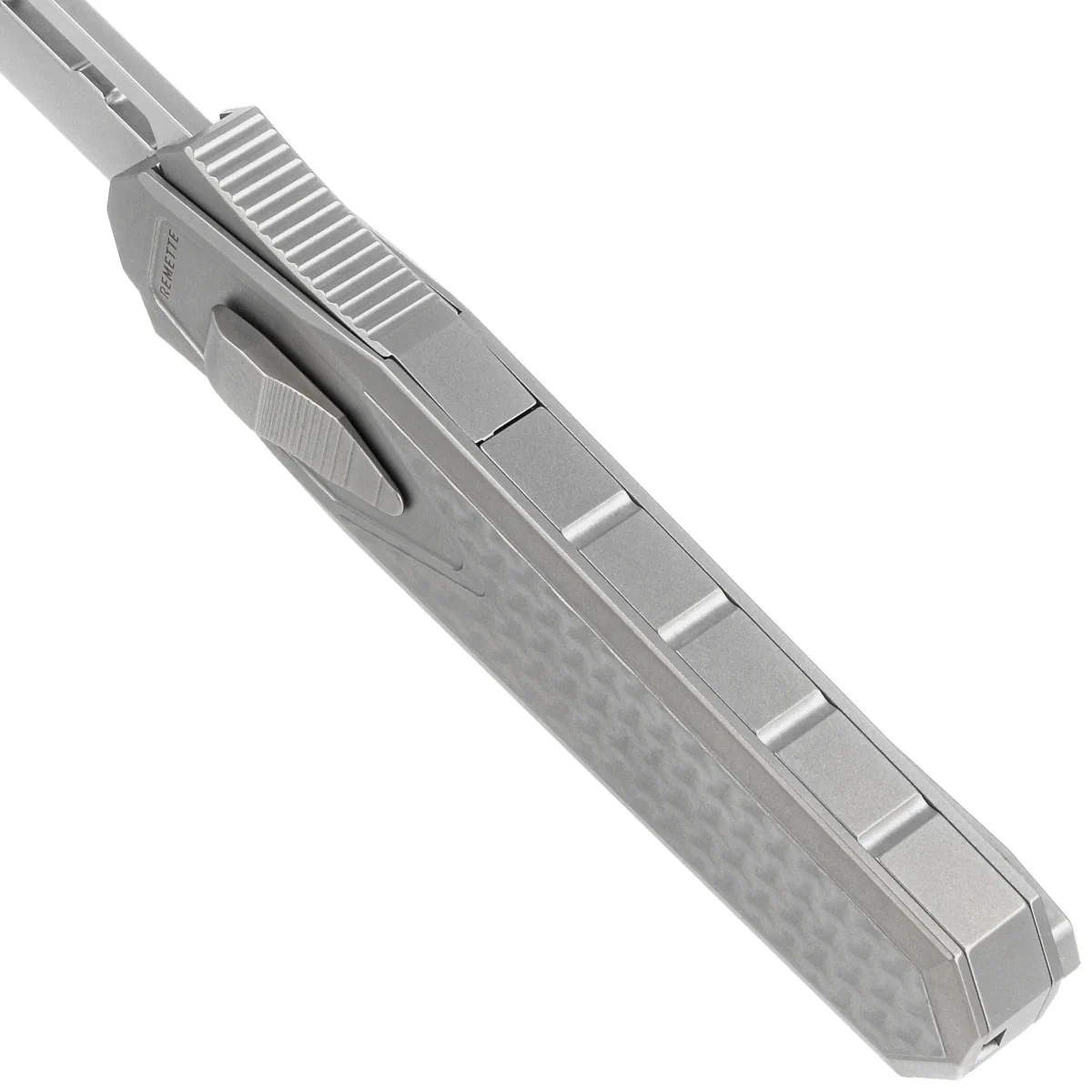 - Swordfish Titanium/Copper Carbon Fiber, Pearlescent. An innovative knife from the young Remette Knives manufactory. OTF with an extendable blade made of Böhler M390 steel by gravity. Handle made of titanium with an smart blade release system.