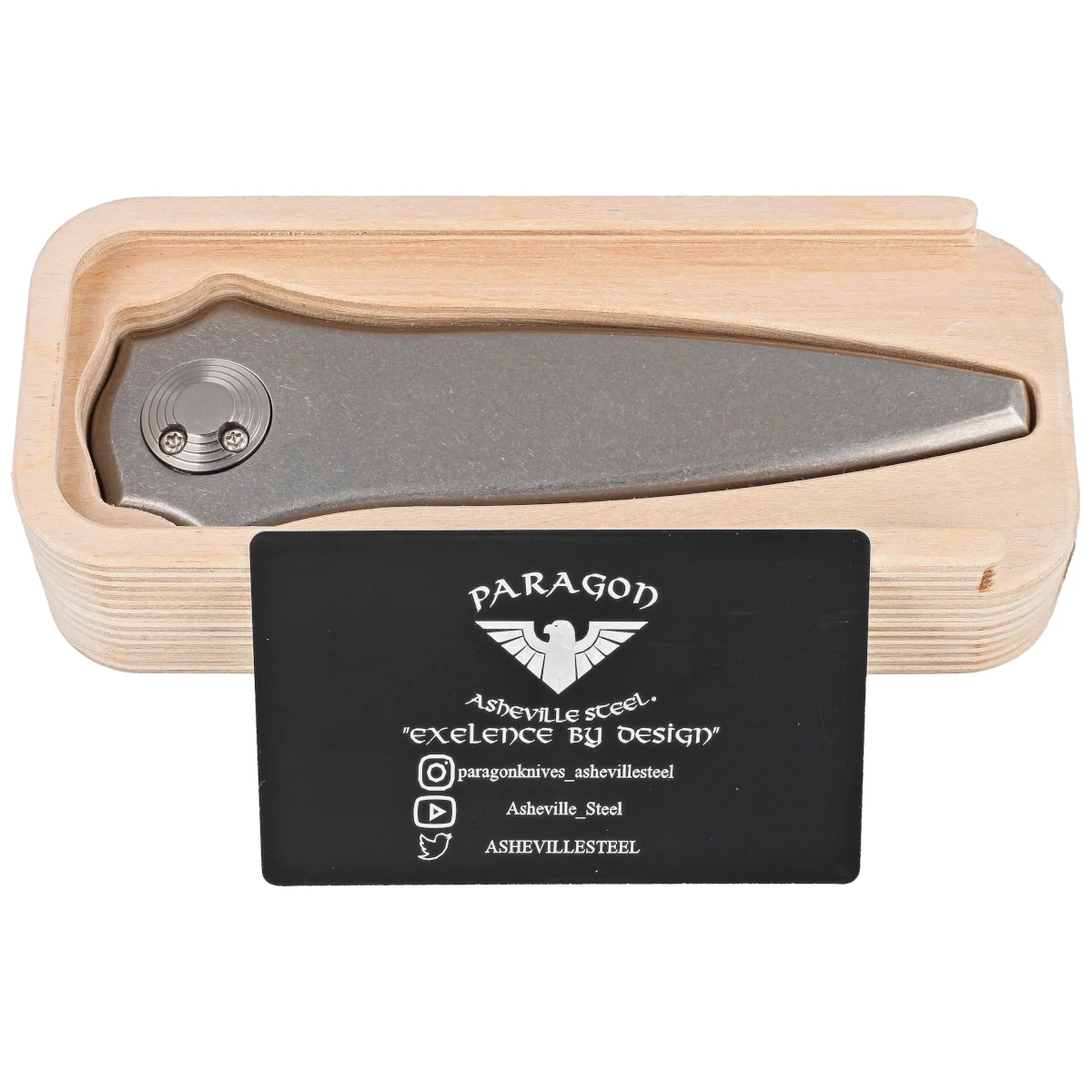 Paragon Warlock Smooth Gray Titanium, Damascus Baker Forge Raindrop Gomai Copper Shim 80CRV (TY-WAR-SM-S-BFD)