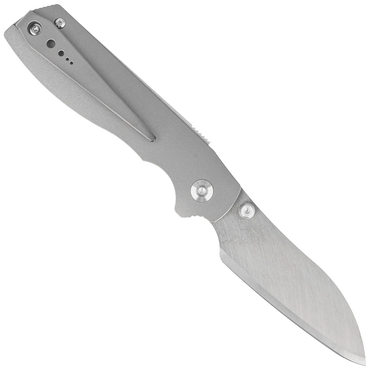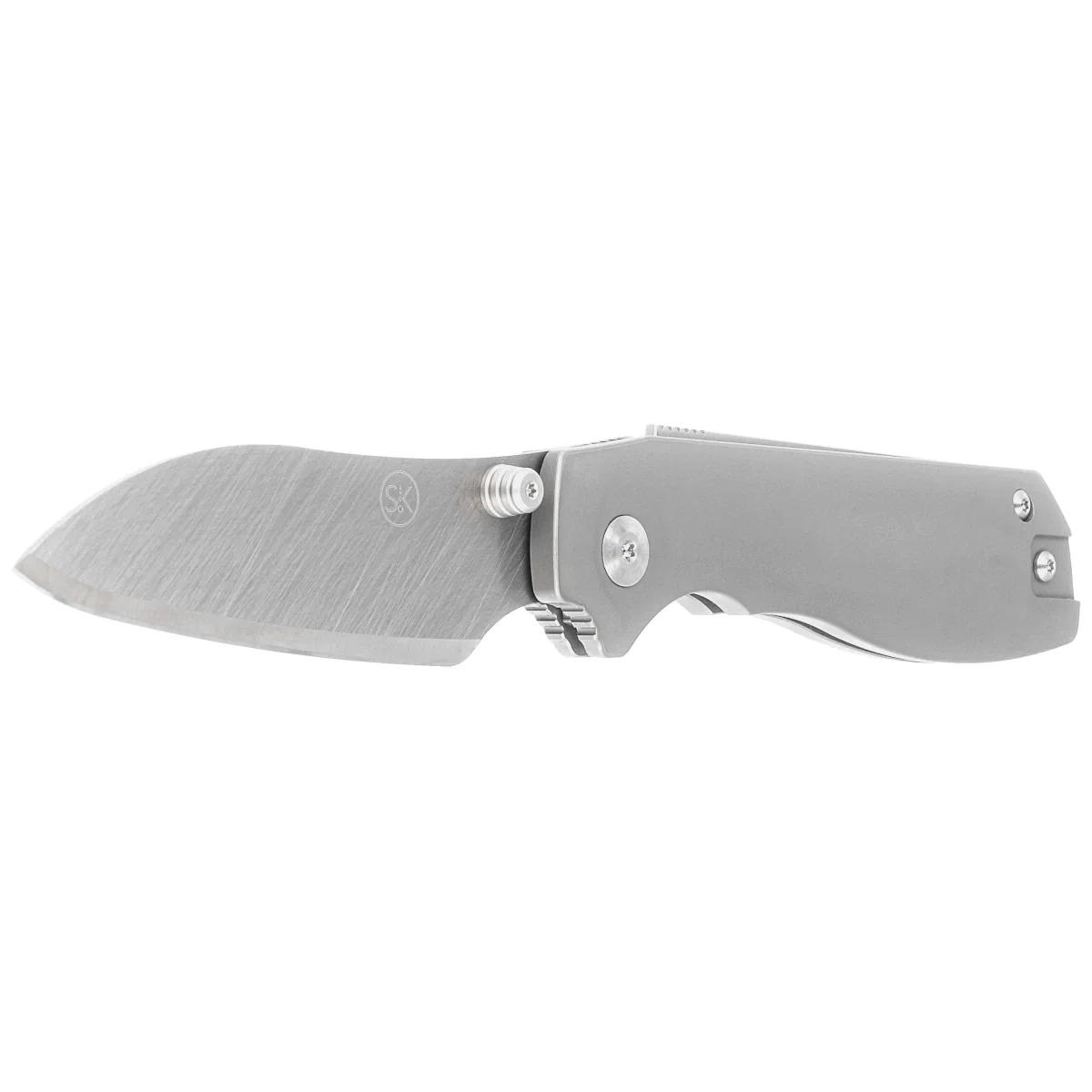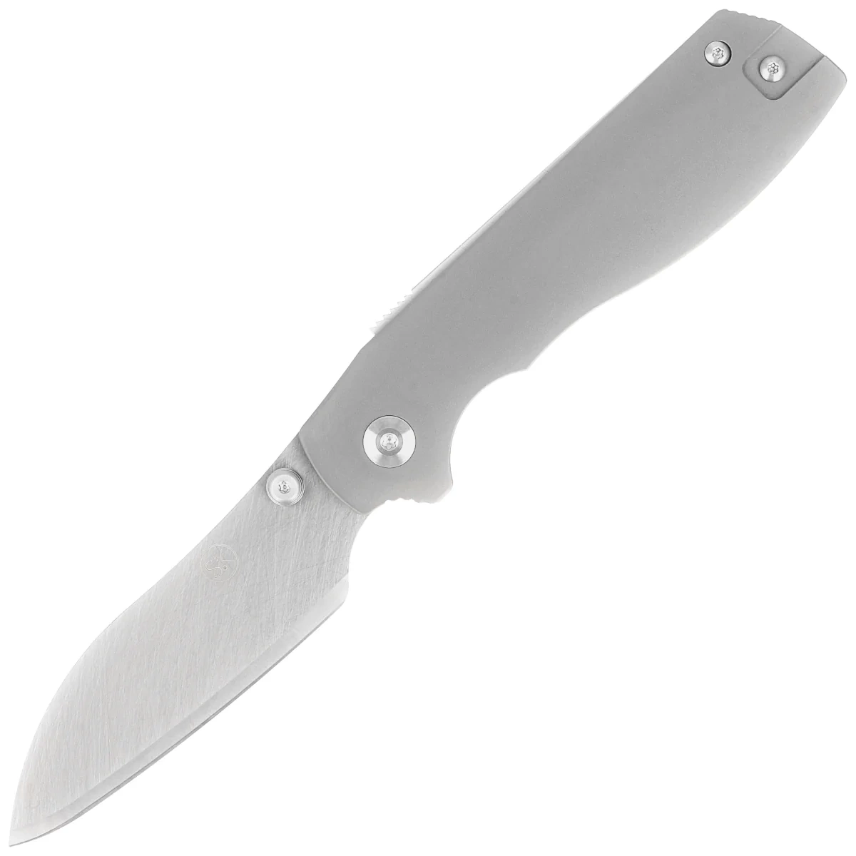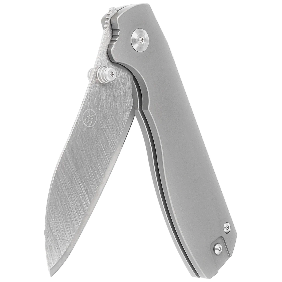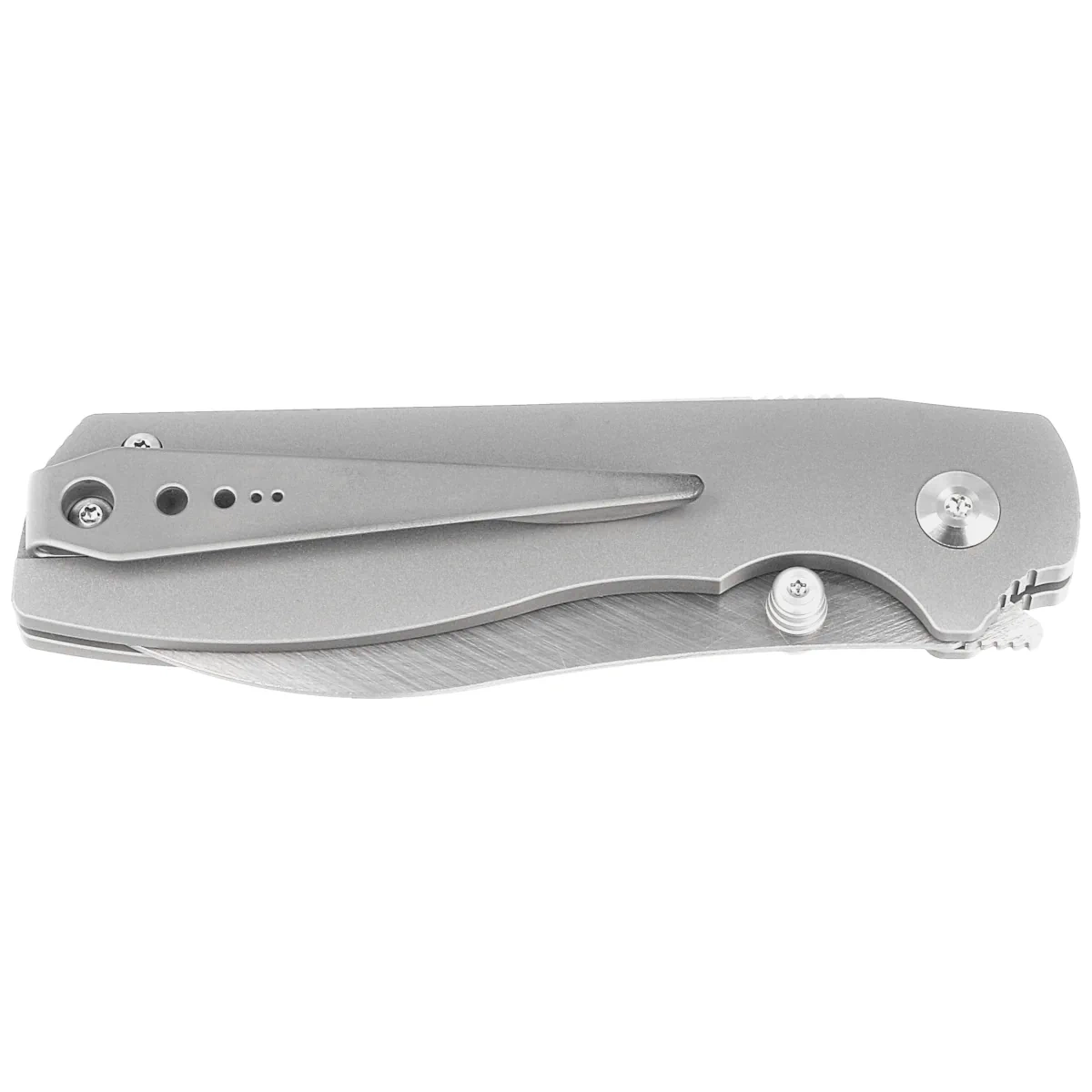 Handle - slim titanium grips make it easy to quickly reach the folder. Slightly roughened surface of the covers provides a more secure grip. Two-position left/right titanium clip allows you to carry the knife in tip-up position (blade tip up). The clip features a series of mathematically designed 5 circles cut to reflect the Fibonacci sequence - a trademark of the Sandrin Knives brand.