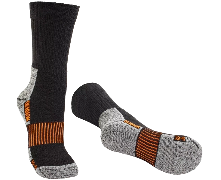 10,81 €Trek Merino Black long, lightweight, and durable trekking socks designed for maximum comfort and longevity. These socks provide warmth, moisture control, and odor resistance. Made from Merino wool, the fabric is breathable, quick-drying, sweat-wicking, and offers thermal comfort in any weather. Polyamide fibers and reinforced zones enhance wear resistance, while elastane ensures a precise fit to the foot.