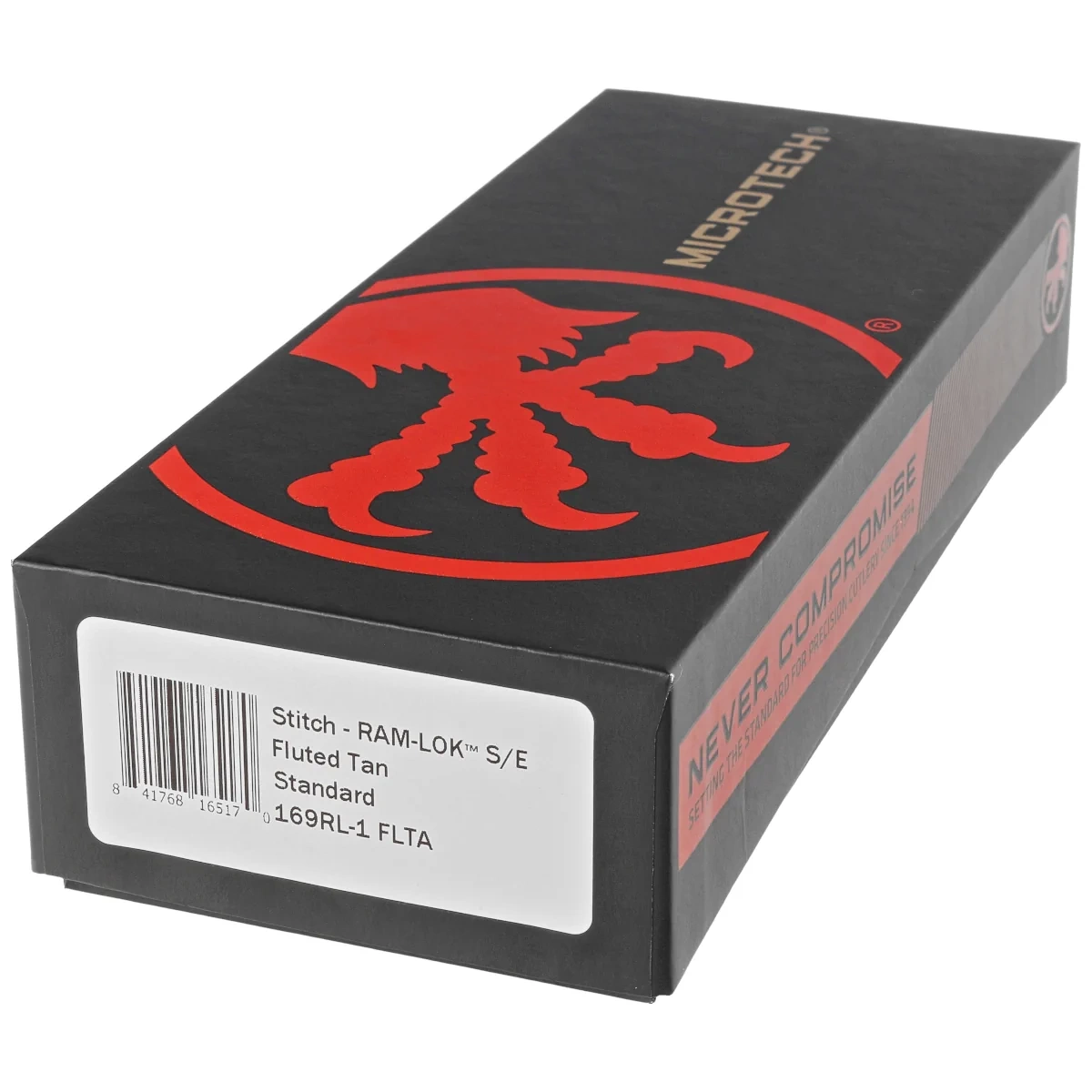 - Stitch Ram-Lok S/E Fluted Tan Aluminum, Black manual version of the popular design by Sebastijan Berenjie of Borka Blades and Microtech. Wide harpoon-shaped blade, superior materials and legendary quality workmanship from Microtech Knives.