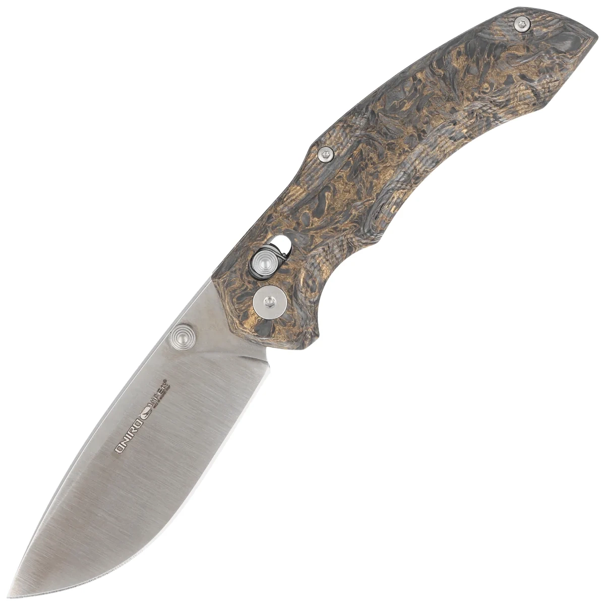 • Oniro Dark Matter Gold Carbon Fiber, Satin compact EDC folding knife designed by Denis Simonutti for Viper. Simple, reliable design with cross bar lock, great contoured Handle and today's best MagnaCut knife steel.