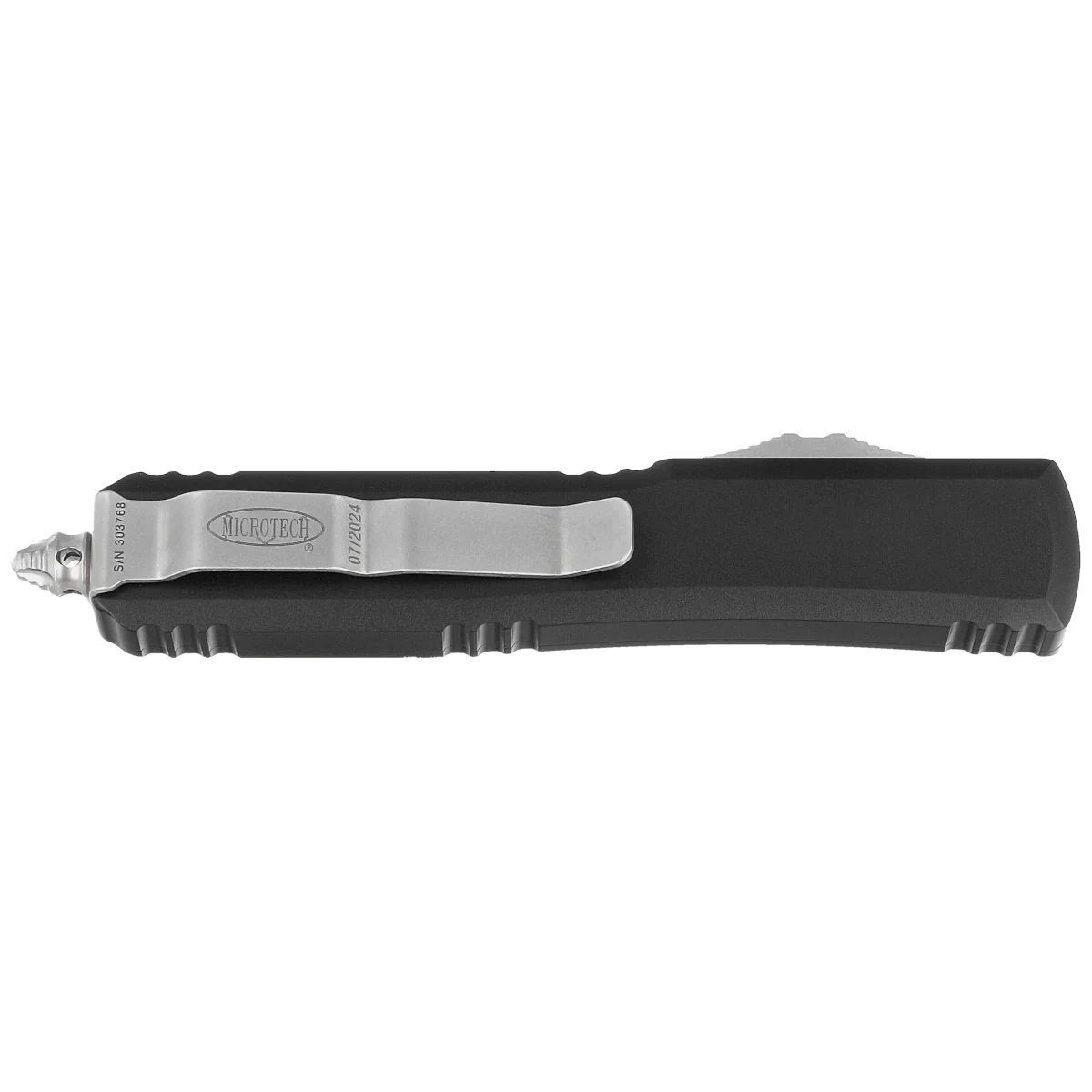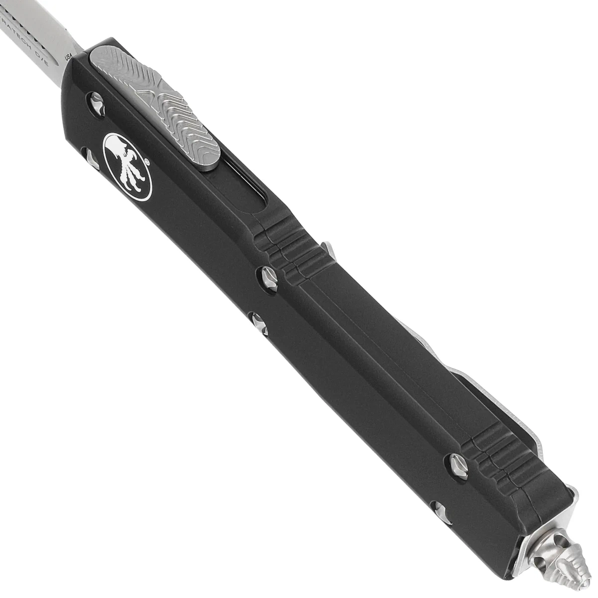 Ultratech D/E Black Aluminum, Satin is a full-size OTF (Out The Front) automatic knife from the Ultratech series. Featuring a hell of a fast extension mechanism with a razor-sharp double edge blade in a striking Satin finish. 100% made and assembled in the USA. Designed by Anthony Marfione, knifemaker and owner of Microtech Knives.