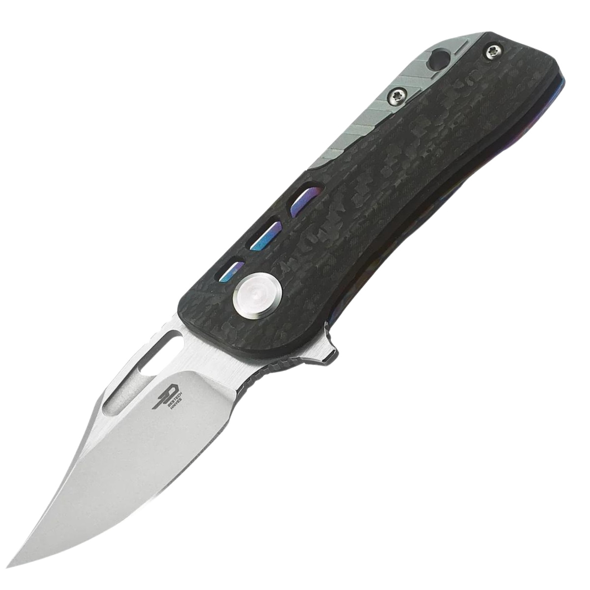 Engine Bowie Carbon Fiber/Colorful Flamed Titanium, Bead Blasted/Satin is an exceptional example of precision craftsmanship, combining modern materials and advanced technology. Blade of bowie type, made of high quality CPM S35VN steel, known for its excellent corrosion resistance and exceptional blade durability. An ideal tool for everyday use. Handle made of a combination of carbon fiber and titanium, is not only aesthetically pleasing, but also extremely strong and lightweight. The simple, ergonomic design of the Handle guarantees a secure grip and comfort of use even during prolonged work. The knife's compact dimensions and low weight (74g) make it an ideal choice for those looking for a reliable, portable tool. The Frame Lock mechanism ensures the safety of use, eliminating the risk of accidentally closing the blade. Bestech Engine Bowie is not only a tool, but also an expression of style and elegance that will satisfy even the most demanding users.