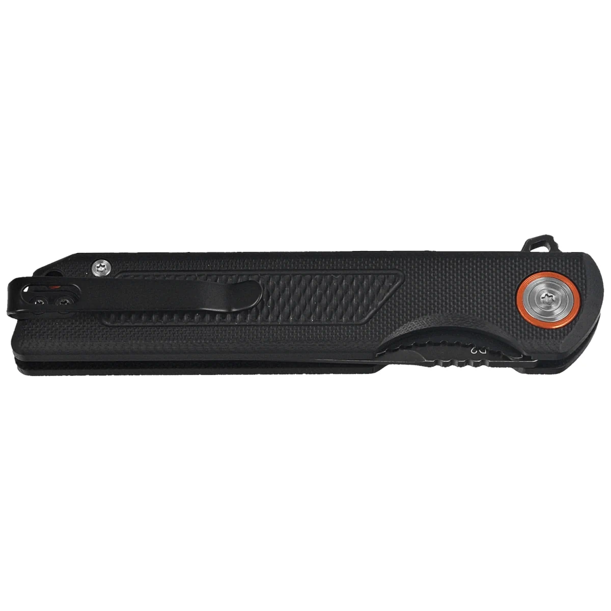 Momentum Black G10, PTFE Stonewashed, is the latest design from BlackFox's sub-brand. Featuring a Tanto blade made of D2 steel and textured G10 composite handle scales, the knife offers exceptional ease of use for everyday carry (EDC). Flipper for opening and the Liner-Lock mechanism for unlocking the blade ensure intuitive handling. This is a standout example of a compact EDC knife, making it an excellent choice for anyone seeking a reliable tool for daily tasks.