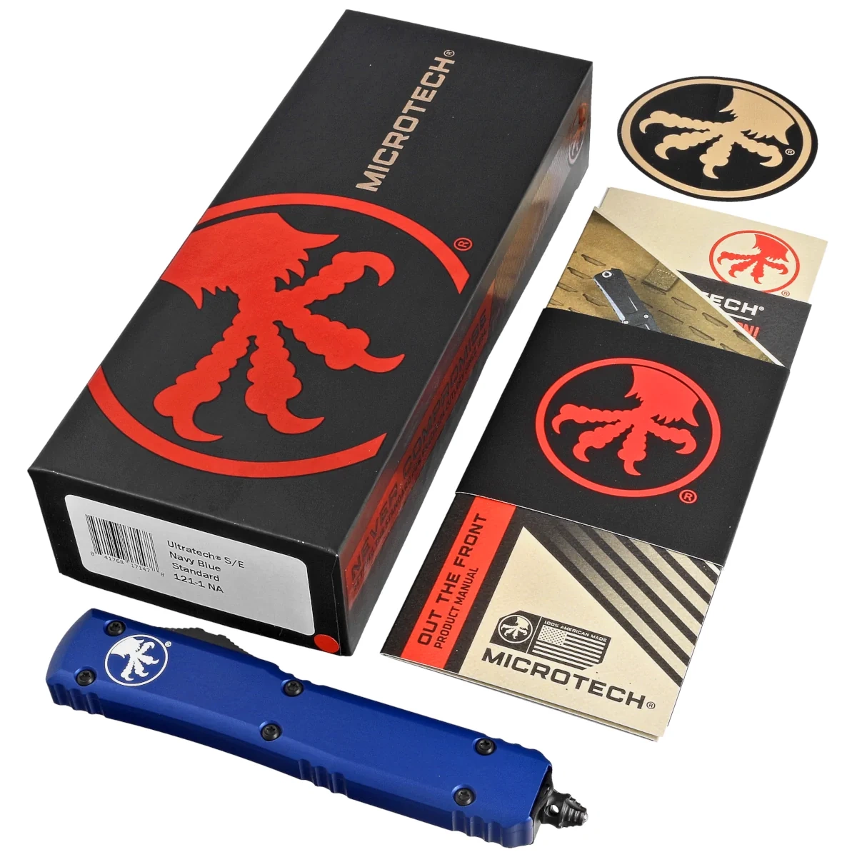 - Ultratech S/E Navy Blue Aluminum, Black is a full-size OTF automatic knife from Ultratech. Operating in D/A mode, it features a Böhler M390 steel head and a precision-crafted aluminum handle. Designed by Tony Marfione owner of Microtech Knives