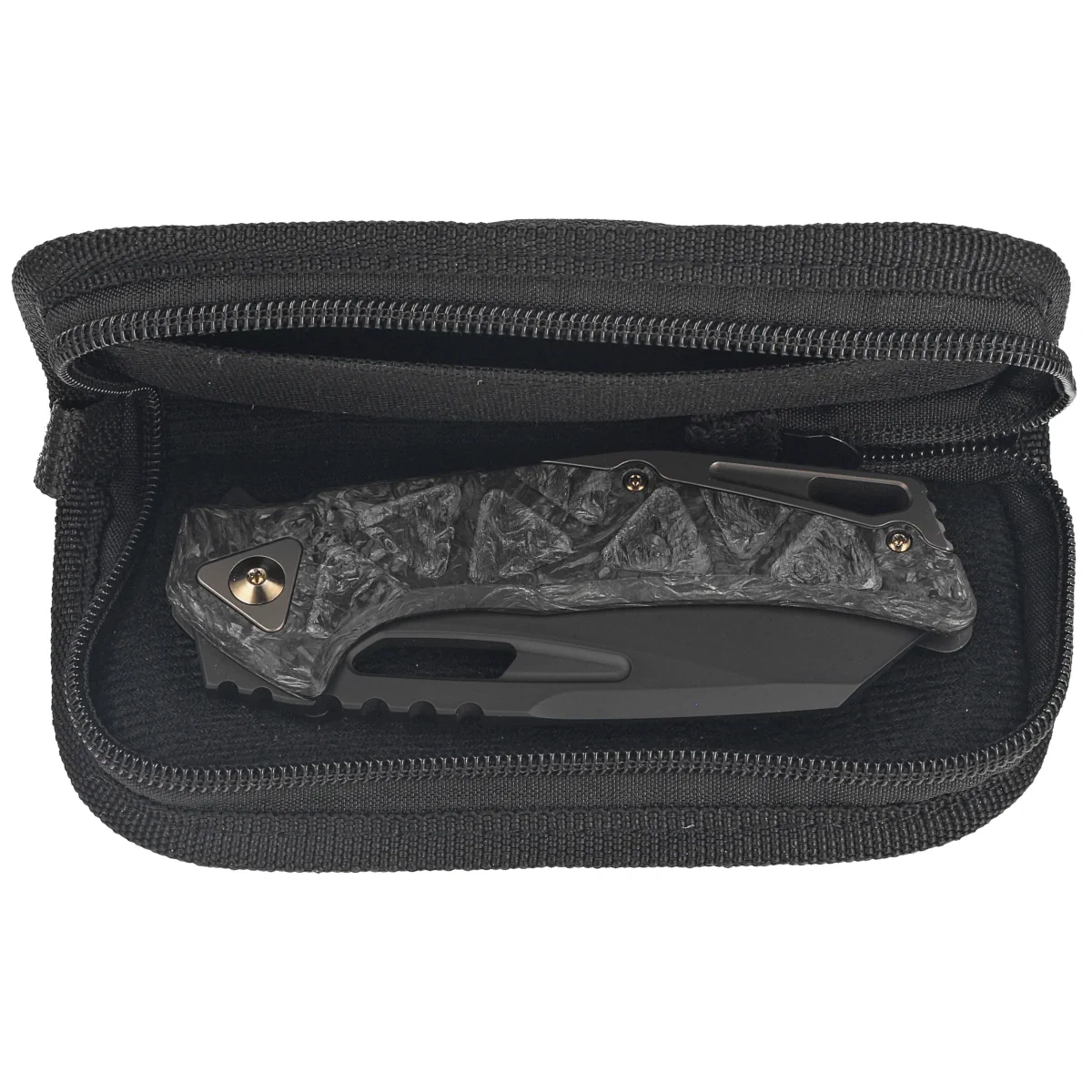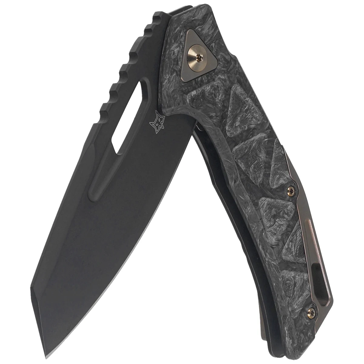 Chronos Dark Matter Fatcarbon, Bronze HW, Black PVD, a compact knife with strong construction designed by Stefan Merk. The ergonomic handle made of Fatcarbon, is not only durable, but also extremely stylish. The blade is made of what is considered the best knife steel today, CPM MagnaCut, which is known for its strength, long sharpness retention and incredible corrosion resistance. Frame Lock type lock ensures safety during use. Whether you're an avid knife enthusiast or just looking for a sturdy EDC tool, this knife is sure to meet your expectations.