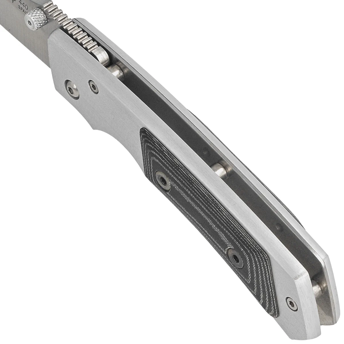 PMC-7M Gray Aluminum / Black Micarta, Satin EDC folding knife with a classic design. Made with Muela 's characteristic care. Handle made of aluminum and Micarta composite, Blade made of proven 440C stainless steel, all at a great price!