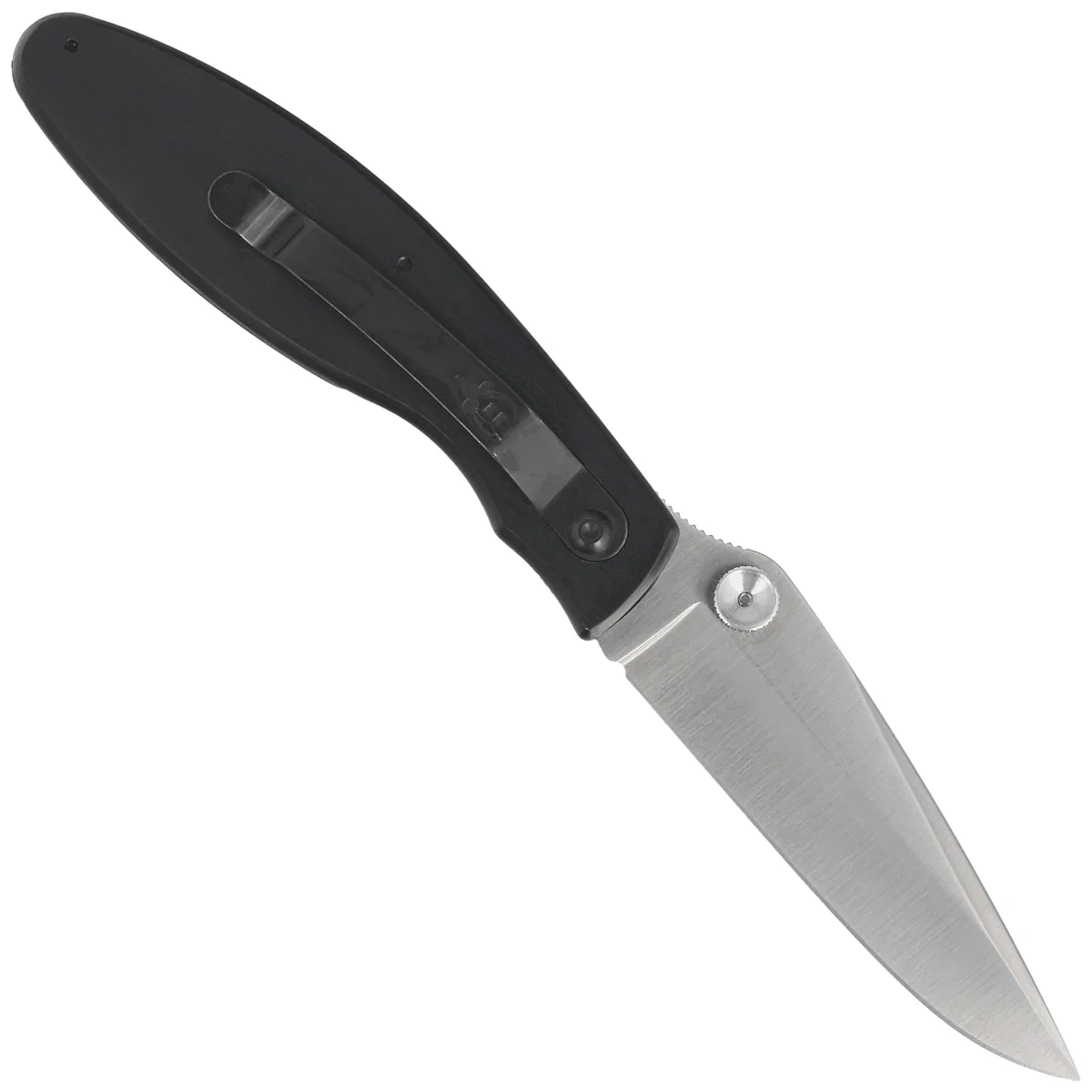 Blade - classic Clip Point finished with elegant satin finish. The generous belly extends the length of the cutting edge in relation to the length of the blade converging towards the needle-sharp tip of the knife. The thickness of the blade provides high strength while the flat grind gives excellent cutting edge geometry and extreme cutting performance. It opens with a double-sided pin in the wedge. A section of the back of the wedge creates a thumb ramp for easy control of the knife. The whole is locked with the proven and popular liner lock.