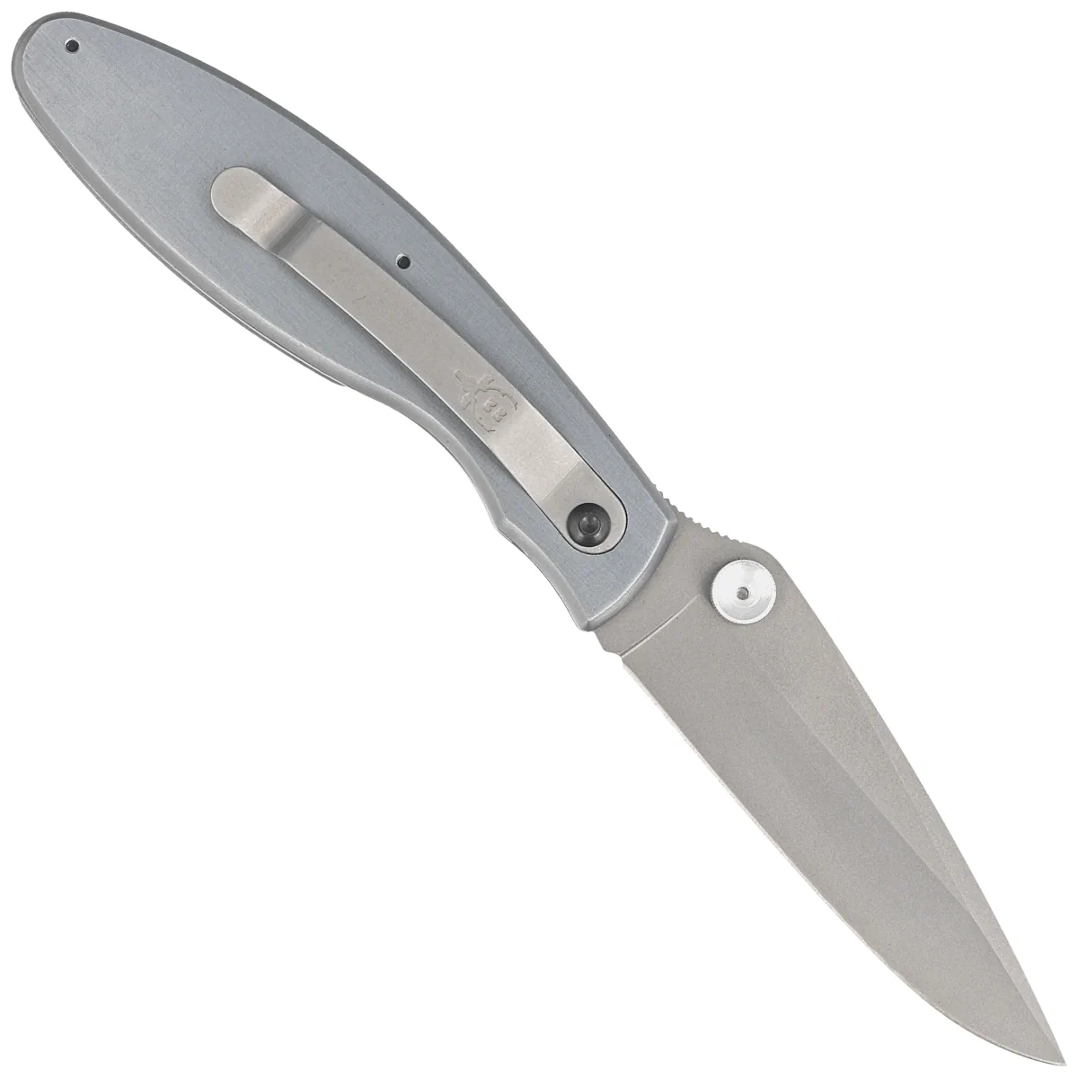 Blade - classic Clip Point finished with elegant satin finish. The generous belly extends the length of the cutting edge in relation to the length of the blade converging towards the needle-sharp tip of the knife. The thickness of the blade provides high strength while the flat grind gives excellent cutting edge geometry and extreme cutting performance. It opens with a double-sided pin in the wedge. A section of the back of the wedge creates a thumb ramp for easy control of the knife. The whole is locked with the proven and popular liner lock.