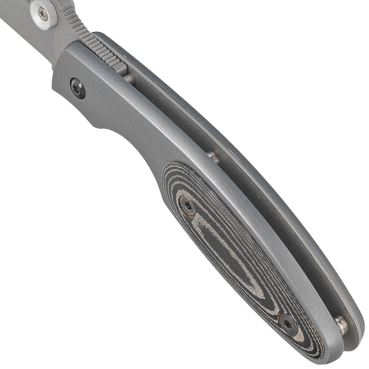 Product name: KMC-7M Gray Aluminum / Black Micarta, Satin