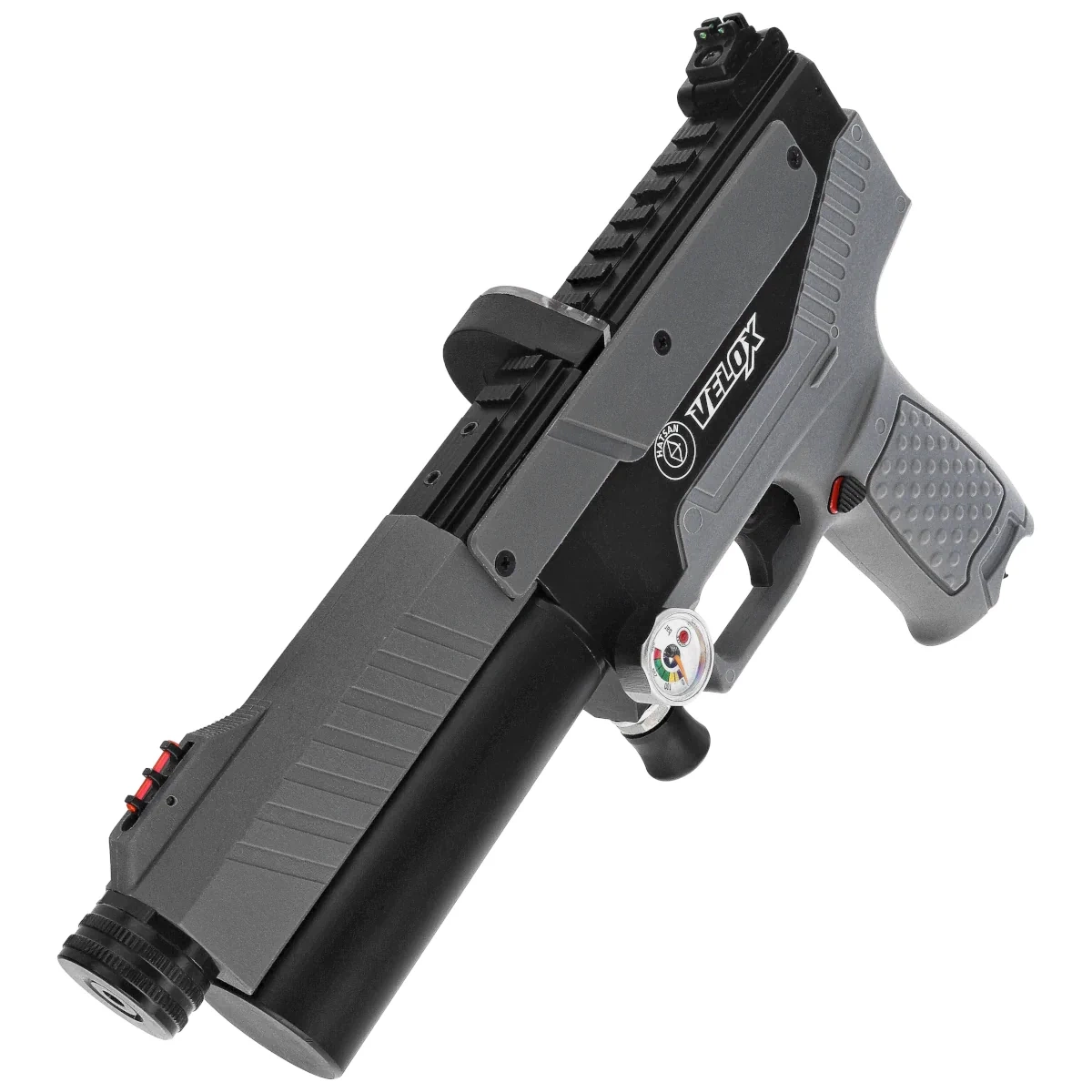 - Velox Grey .22 a semi‑automatic PCP pistol from Hatsan with a semi‑auto reloading system. Ideal for dynamic shooting. Two 50cc air tube, filled to 250 bar, ensure long-lasting shooting. Available in 4.5 mm, 5.5 mm, and 6.35 mm calibers.