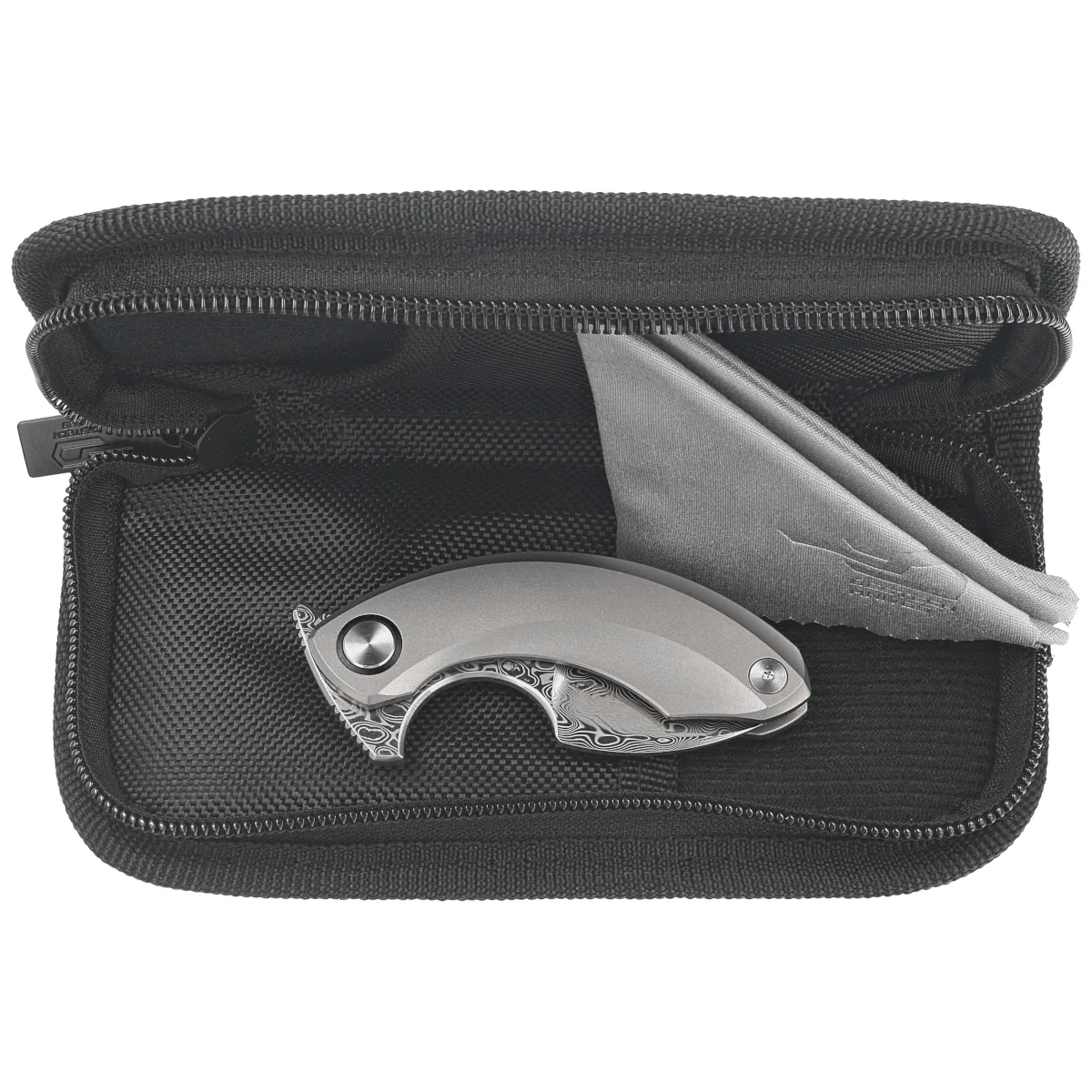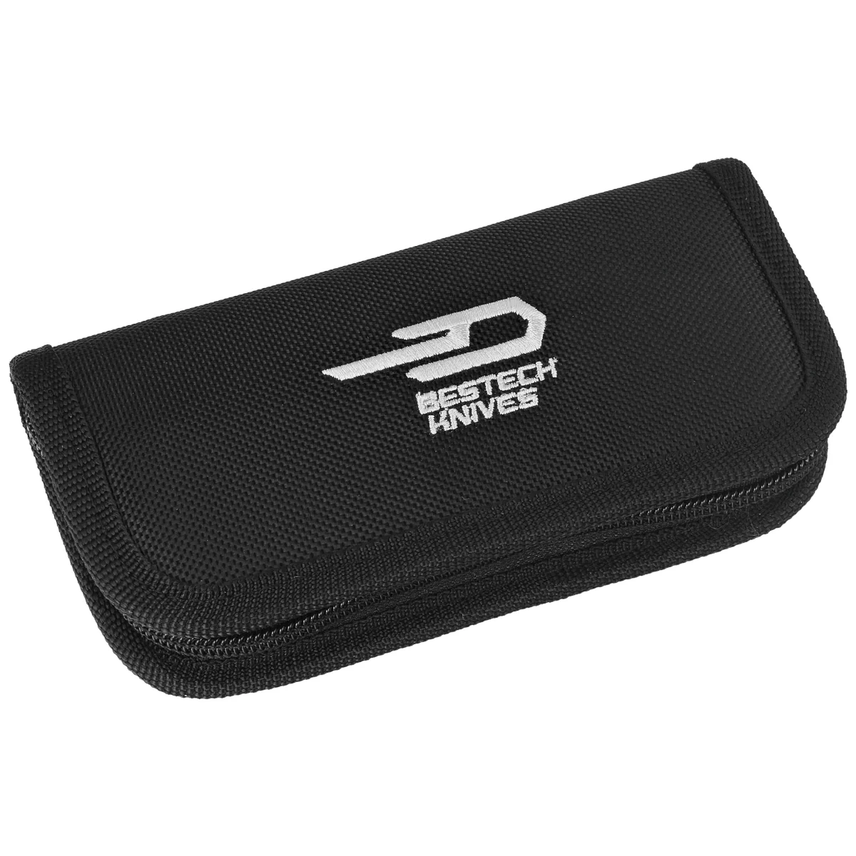 Case - the knife is packed in a zippered nylon soft pouch with the brand's logo for safe carrying and storage of the folder.