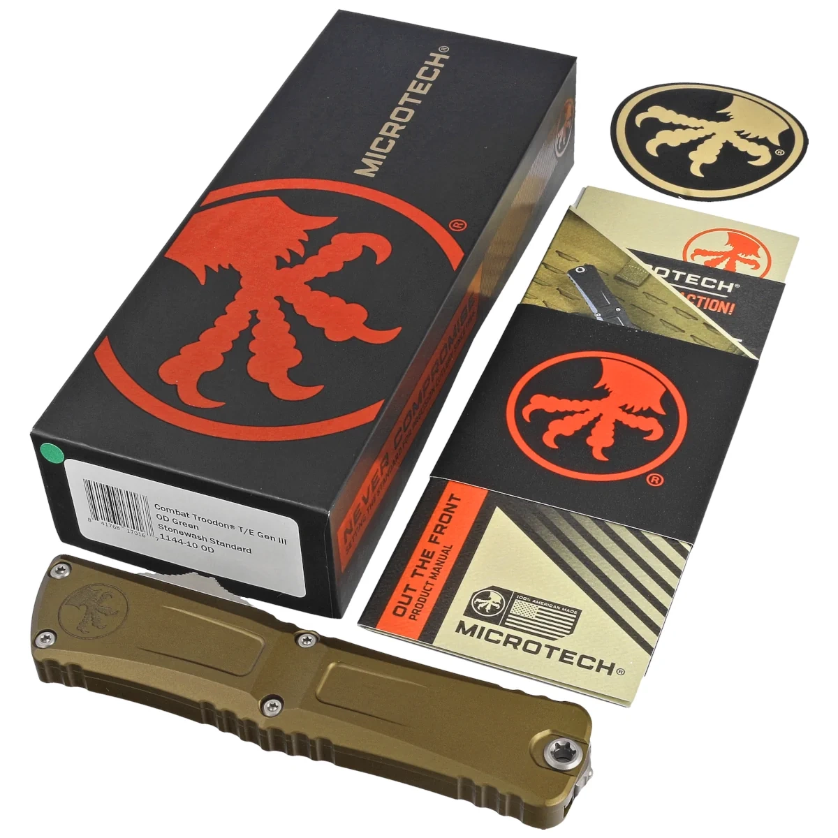 Microtech Combat Troodon Gen III T/E OTF Knife OD Green Aluminum, Stonewashed M390MK by Tony Marfione (1144-10OD)