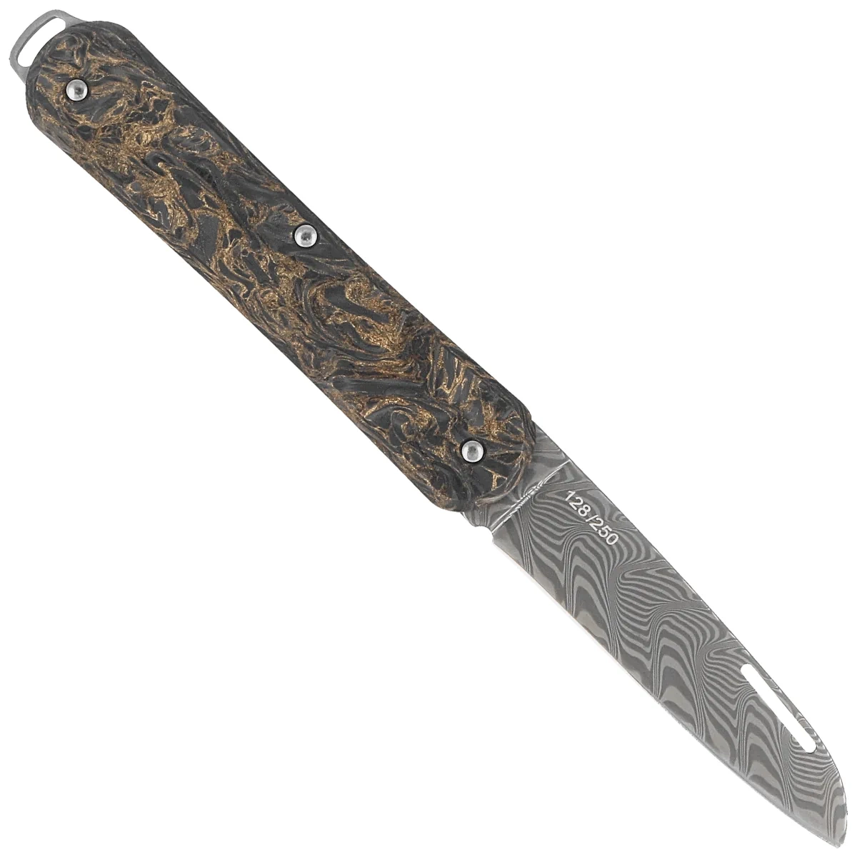 Fox Vulpis 130 LE No 128/250 Dark Matter Fat Carbon, Super Clean Damascus by Balbach Damast Pocket Knife (FX-VPDAM130 DMGO)