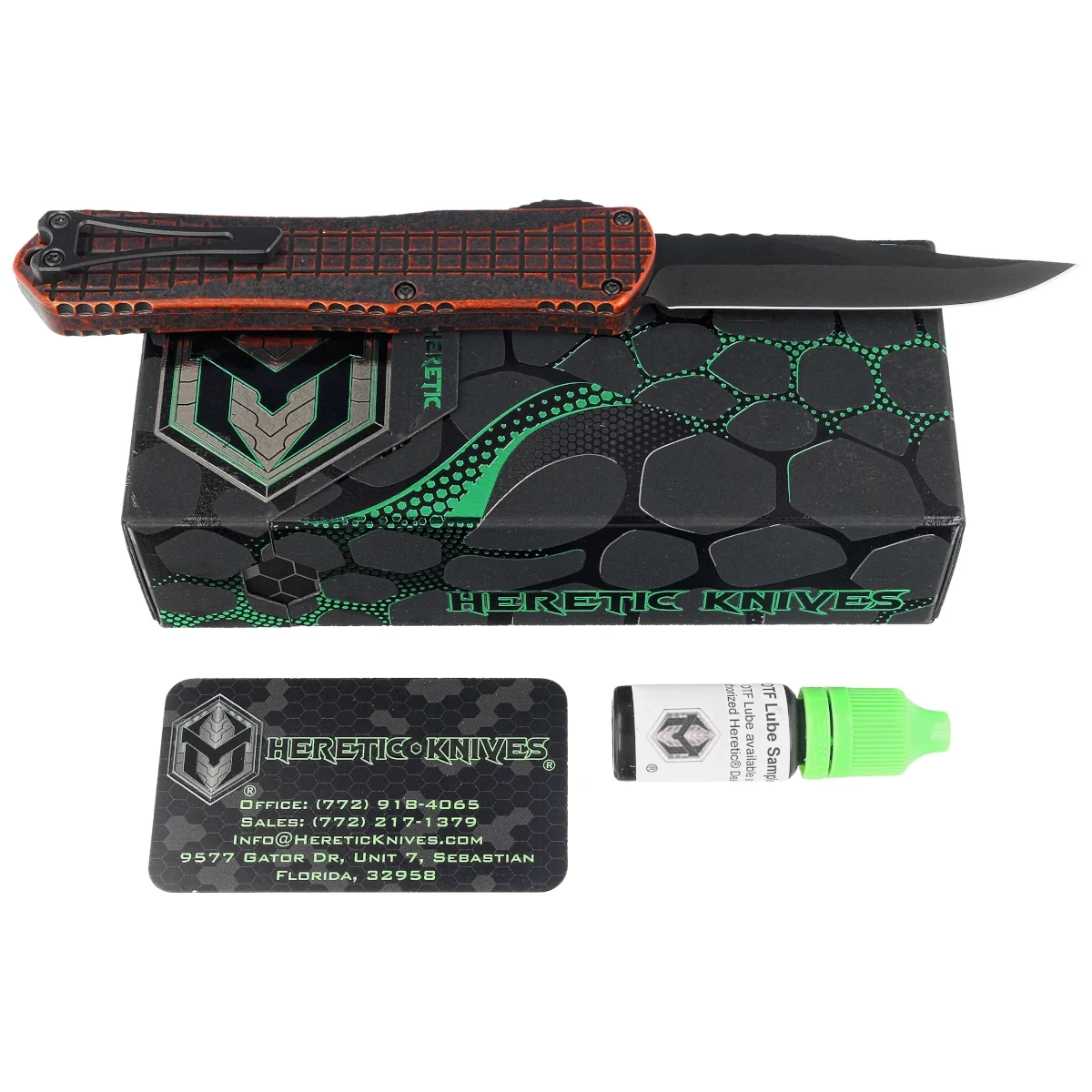 Heretic Manticore X Bowie Breakthrough Orange Grenade Aluminum, Black DLC MagnaCut OTF Knife by Tony Marfione Jr. (H030BF-6A-BRKORG)
