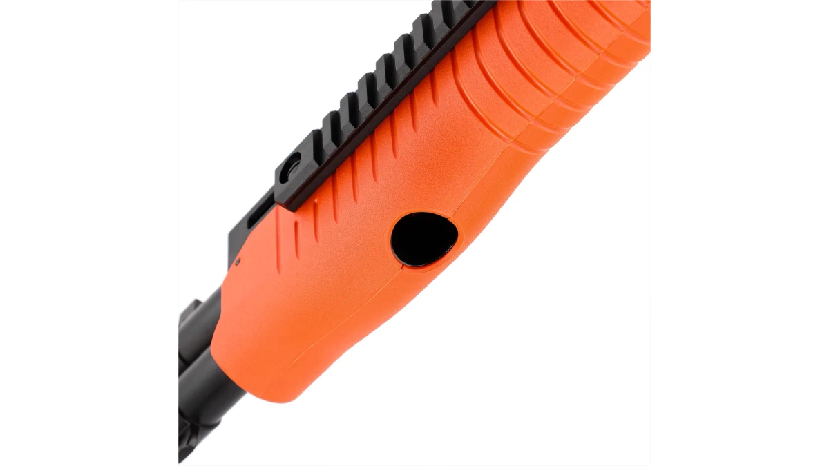 The P2P HDB 68 is a compact RAM shotgun chambered in .68 caliber, powered by a 12 g CO₂ cartridge. It features a quick-piercing CO₂ system, a pump-action reloading mechanism, Picatinny mounting rails, and a high-capacity magazine holding up to 16 rounds. The orange color variant enhances visibility in stressful situations, ensuring greater readiness for defense.