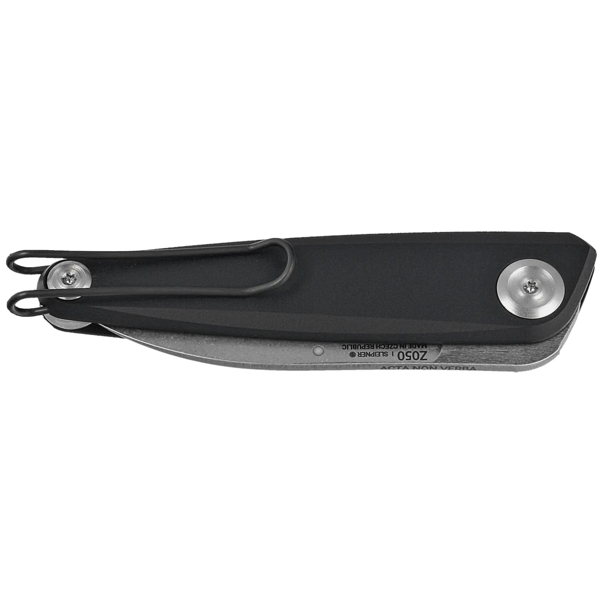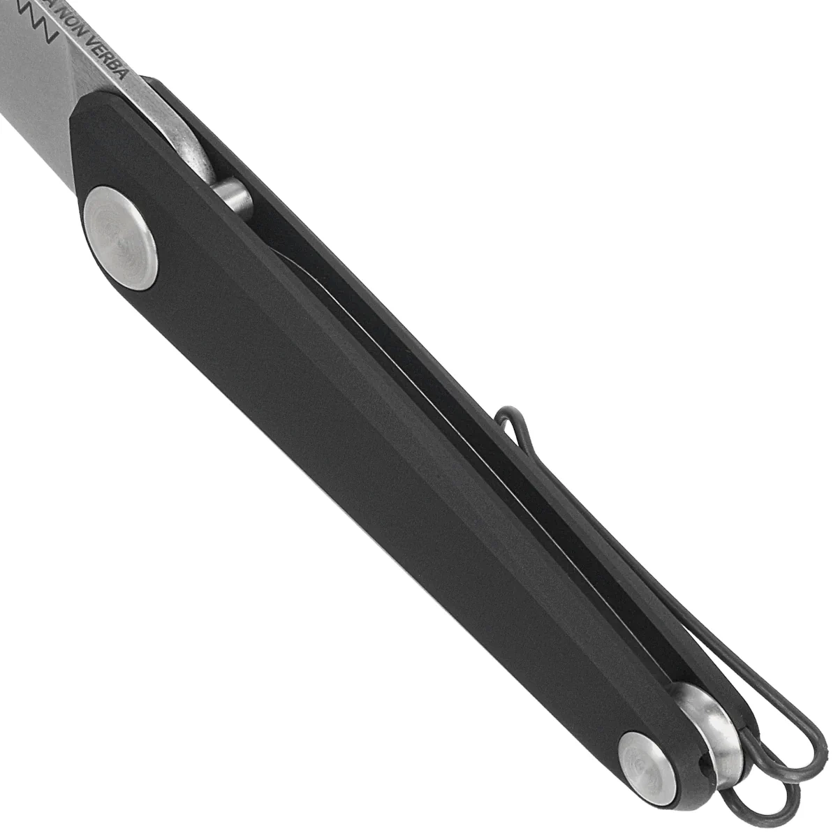 Z050 BB Black Aluminum, Stonewashed Czech company ANV (Acta Non Verba) Knives created this model for travelers who want to carry a blade with them at all times without risking complications with the law. The knife's utilitarian blade works well for most jobs. Made of Sleipner steel, known for its durability and long holding of sharpness. Handle made of lightweight and resistant aluminum. This is a material that not only reduces the weight of the knife but also provides a secure grip. The double-sided deep carry clip allows you to discreetly and conveniently carry the knife with you without drawing attention. Blade's length, the use of Double Detent Slipjoint system or two-hand opening makes this model acceptable in most countries with restrictions on the right to carry knives. Its unique design and excellent technical parameters make it a knife that attracts attention and meets the expectations of even the most demanding users.