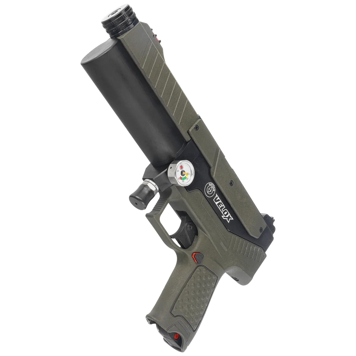 • Velox Olive Drab .25 a semi‑automatic PCP pistol from Hatsan with a semi‑auto reloading system. Ideal for dynamic shooting. Two 50cc air tube, filled to 250 bar, ensure long-lasting shooting. Available in 4.5 mm, 5.5 mm, and 6.35 mm calibers.