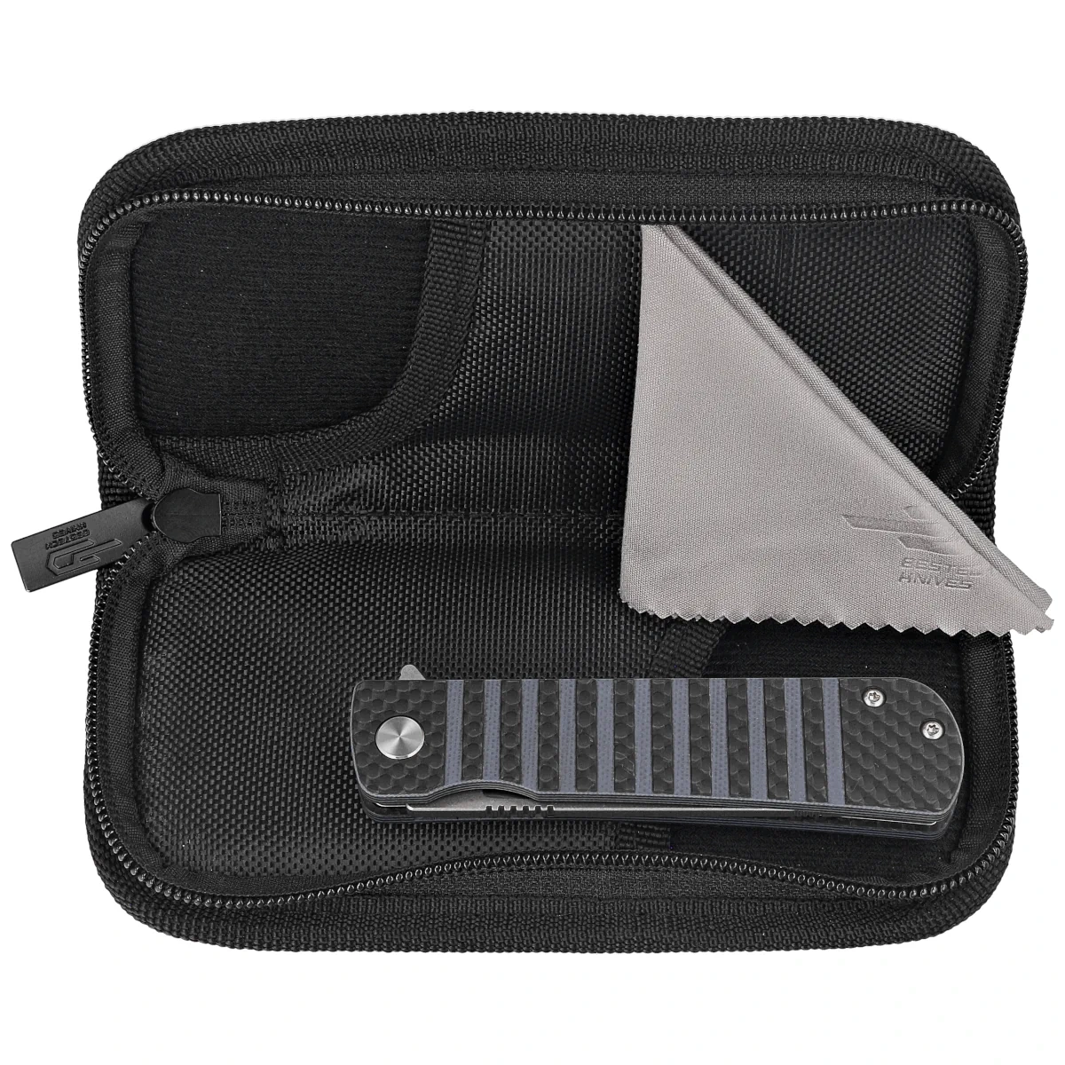 Titan Black Carbon Fiber/Blue G10, Stonewashed/Satin is an EDC folder, the fruit of a collaboration between renowned designer Keanu Alfaro and the Bestech brand. The precision-designed blade, made of durable CPM 154CM steel, ensuring not only high resistance, but also long sharpness retention. Its wide, versatile profile is ideal for precision cutting and slicing, making it a reliable companion for everyday challenges. The carbon fiber laminated G10 composite Handle features an ergonomic shape and the textured surface provides a secure grip, minimizing the risk of slipping, even in harsh conditions. The precision of workmanship, evident in every detail, guarantees unparalleled comfort in use. The Titan model perfectly balances aesthetics with practicality, offering a compact size and reliability that will meet the expectations of even the most demanding users.
