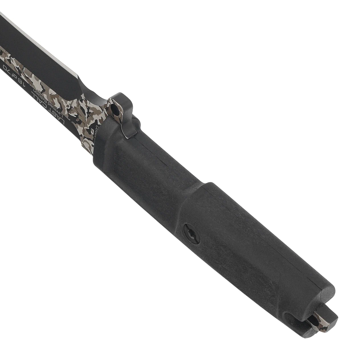 Corvo Last Call LE No 016/70 Black Forprene, Black MIL-C/Geotech Camo, a limited to 70 pieces version of the Chilean Army knife used by special forces, among others. The Chilean Corvo death claw, has proven its effectiveness from South American battles to the sands of Iraq. Combat knife with a long curved blade, tapering to a sharp point thanks to its weight and balance performs excellently during outdoor activities and for defense. The stab for thrusting and poking, the blade for chopping and for planing.