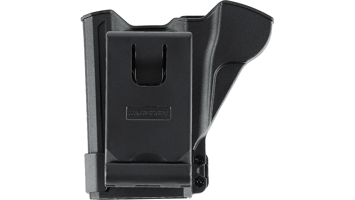 - Umarex T4E Holster for HDR 50 – Durable, Lightweight, and Secure. Features an automatic locking system, adjustable belt mount, and a compartment for a spare magazine. Quick access and comfortable carry in any situation!