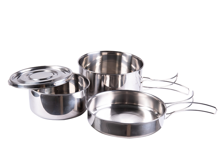 Thoughtful design – the set includes two pots, a frying pan, and a lid that doubles as a plate. All components feature foldable handles for easy transport and storage.