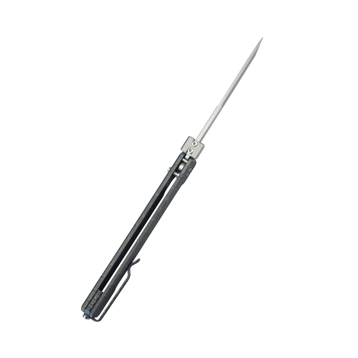 - Prism Flame Titanium, Beadblasted, a slim gentleman's folder designed by Yuze Zhong. Narrow blade made of vacuum-hardened and ice-hardened Swedish Sandvik 14C28N steel. Straight titanium handle fits any hand. Intuitive and secure button lock.