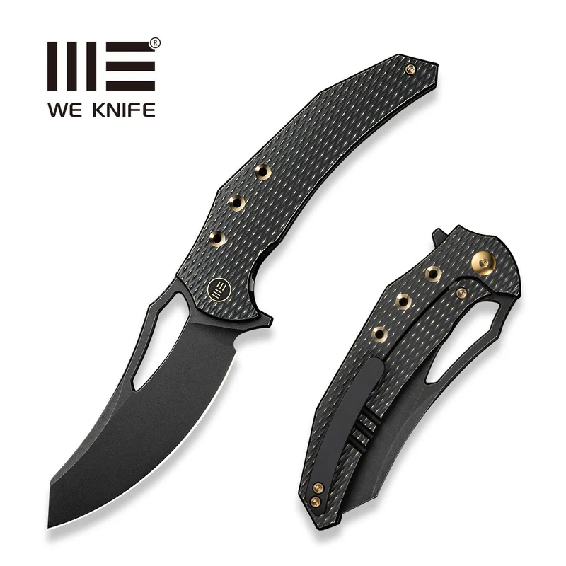 Handle - made of titanium 6AL4V, beveled edges of the covers eliminate sharp edges. Fully covered with a diamond-shaped texture for increased grip. The open open-backed design, fixed with titanium spacer sleeves, reduces weight and facilitates cleaning. WE Knife's stylized logo adorns the pivot axle. A deep forefinger groove improves grip. A single-position (right) titanium deep carry clip allows you to carry the knife discreetly in your pocket in a tip-up position (with the tip of the blade up).