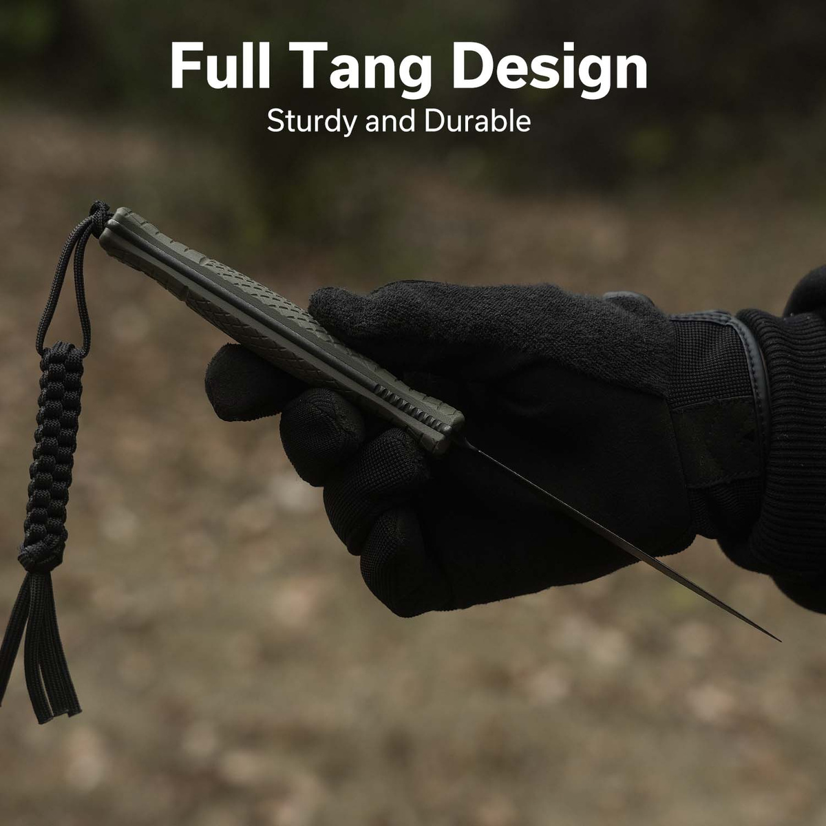 Handle - grips made of rough G10 composite, a weather-resistant, chemical-resistant and mechanically durable plastic, which are screwed directly onto the tang. The profiled shape and deep knurling ensure a comfortable, secure grip even with wet hands. Theforefinger groove improves grip and prevents the hand from slipping onto the blade. There is a hole for a decorative or safety cord (a braided paracord lanyard is included with the knife).