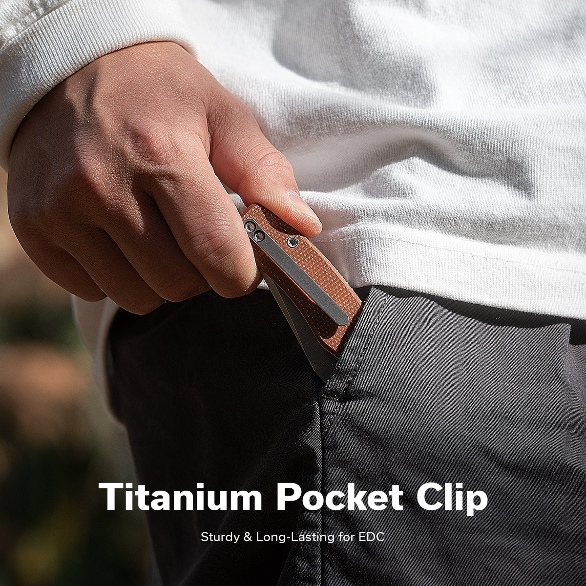 Clingman Brown Canvas Micarta, Satin is an elegant, compact folder designed for demanding users. The blade was designed by the renowned expert Taylor Martin from the Best Damn EDC channel. Made of Nitro-V stainless steel, known for its exceptional corrosion resistance and ease of sharpening. The knife can be opened with a front flipper or a discreet pin in the handle, ensuring comfortable one-handed blade operation. A sturdy liner lock guarantees the stability of the blade in the open position, increasing safety while cutting. Handle made of Canvas Micarta composite, with a rough texture ensuring a firm and stable grip even in wet conditions. The straight profile of the handle makes the knife comfortable to hold, allowing for long work without fatigue. The knife's design combines utility with durability, making it ideal as an everyday tool.