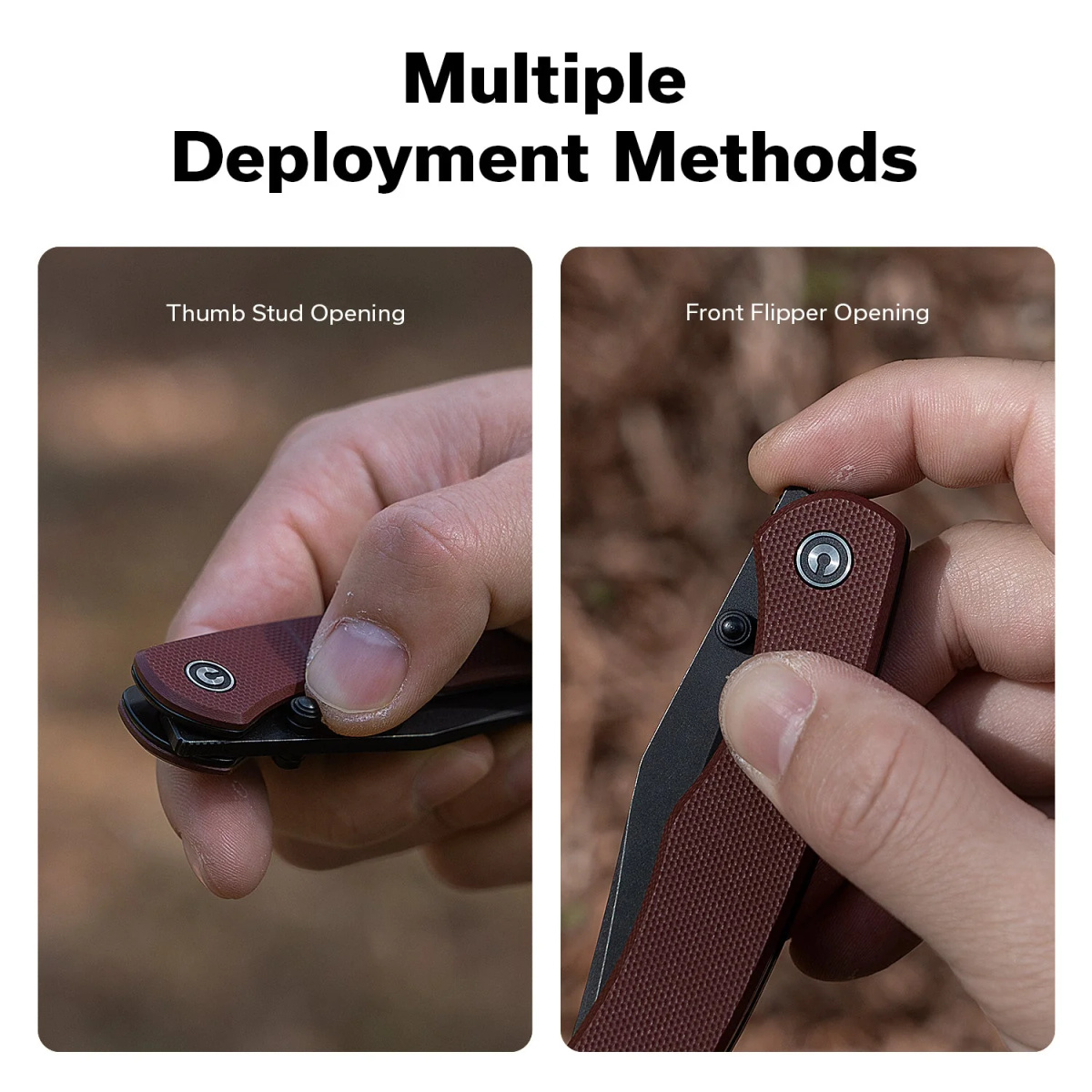 Civivi Clingman Knife Burgundy G10, Black Stonewashed Nitro-V by Taylor Martin Best Damn EDC (C23065-2)