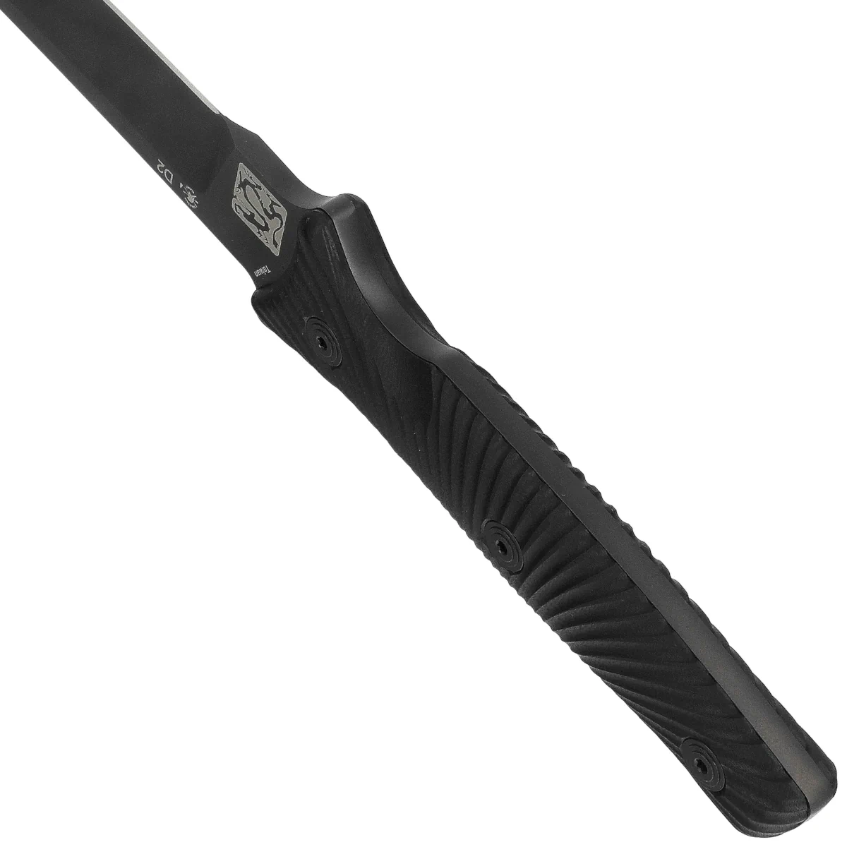 • Torii Black G10, Black Powder, large tactical knife by Tu Lama from Ronin Tactics. Long blade made of D2 tool steel, comfortable, textured handle made of G10 composite. Multi-position plastic sheath with M.O.L.L.E. adapters. An excellent tool.