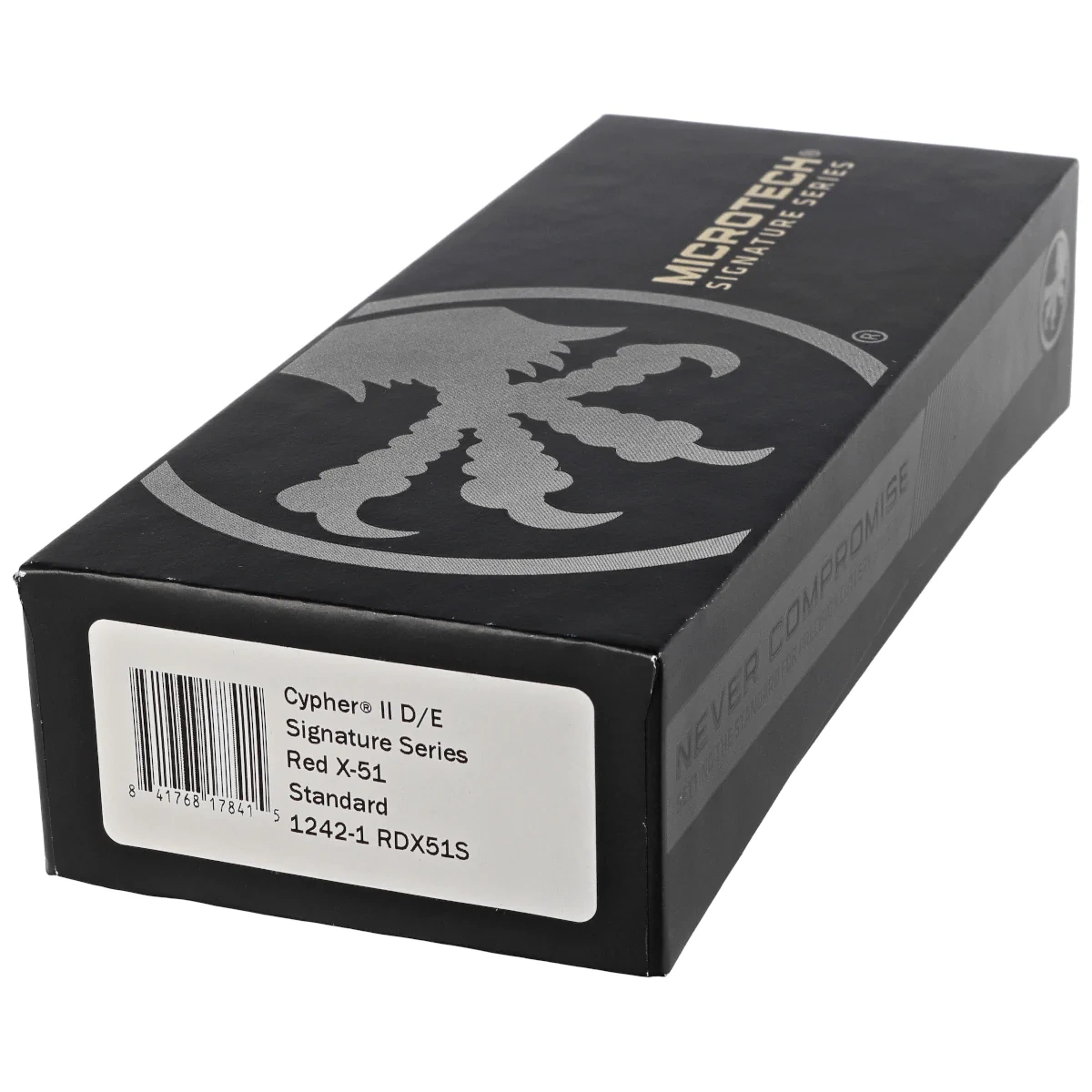 - Cypher II D/E Signature Red X-51 Aluminum, Black collaboration between Deryk Munroe and Tony Marfione, has undergone a comprehensive modernization. Innovative dual blade deployment mechanism ensures smoother operation than ever before in OTF knives.