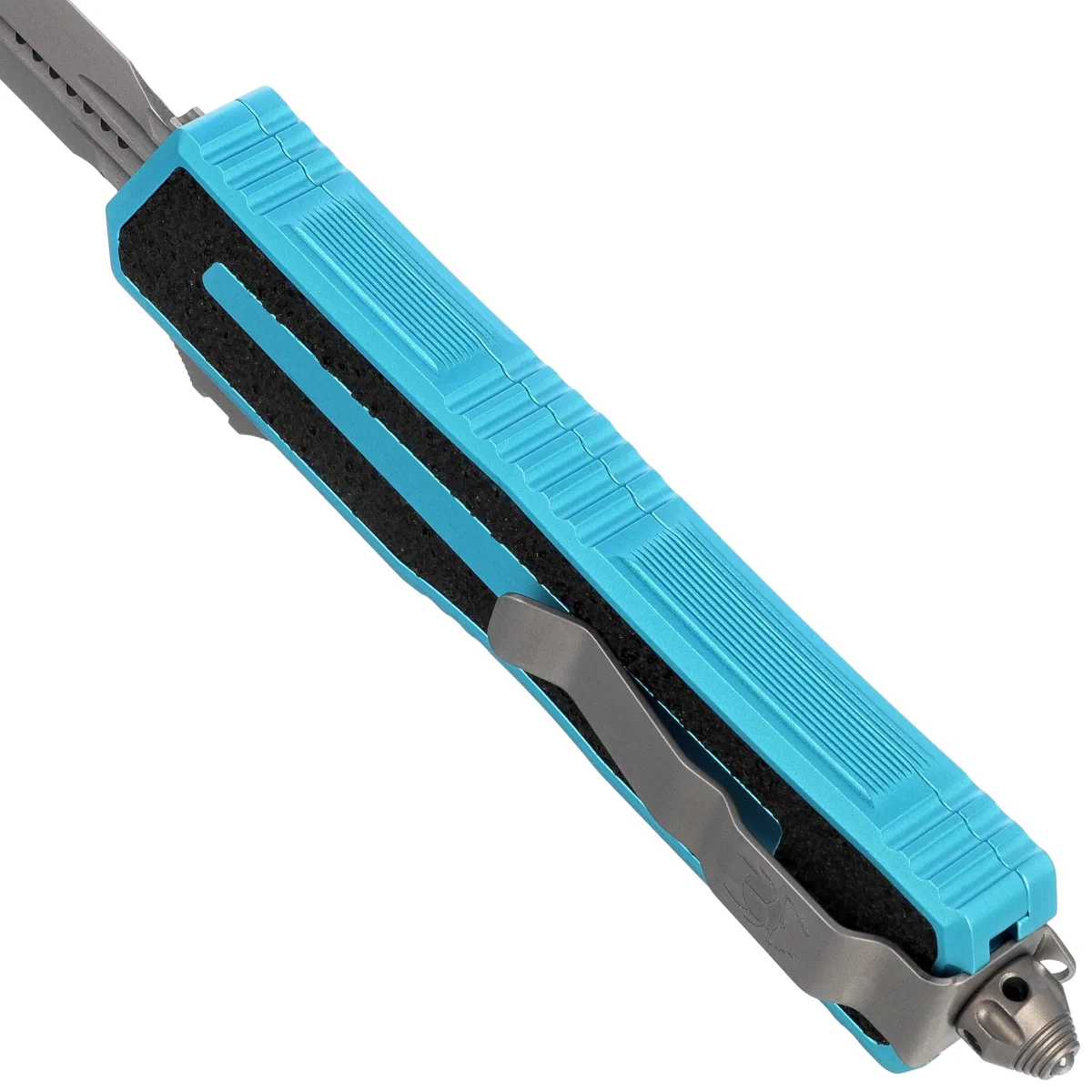 Microtech Scarab II Gen III D/E OTF Knife Turquoise Aluminum, Stonewashed M390MK by Tony Marfione (1280-10TQ)