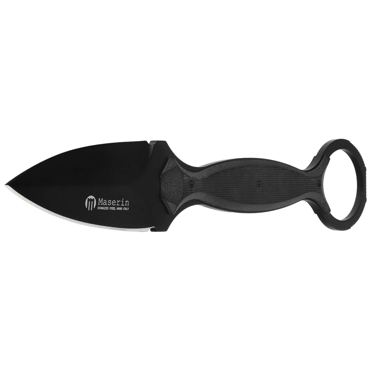 - Neck Knife 922 Black G10, Black, fixed blade neck knife. Designed by Russ Komer for Maserin. Monolithic Böhler N690 steel construction, kydex sheath with Tek-Lok clip for variable positioning.