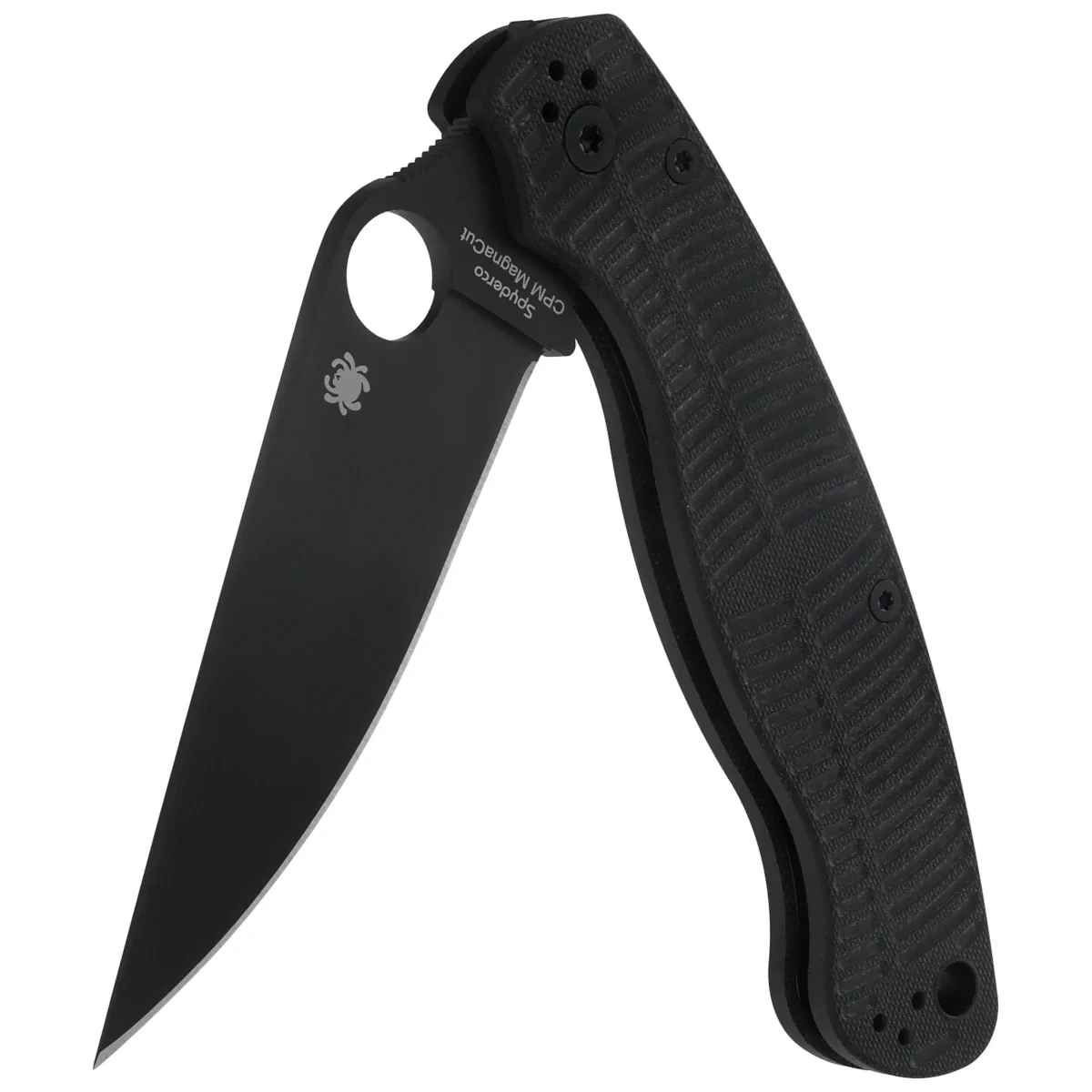 Military 2 Salt Black G10, Black DLC iconic Spyderco knife , the Military folder version of the SALT family. Salt series of Spyderco knives for wet environments, with Blade made of CPM MagnaCut steel . Stronger intuitive Compression Lock, G10 composite grips , same aggressive look and excellent utility! A demonstration of the craftsmanship of father and son Sal and Eric Glesser! One of Spyderco 's most recognizable knives , it has gained a slew of followers both in the military and among civilian consumers. The full-size handle makes it easy to use the folder with gloves as well as those with large hands. The reinforced, open design makes it easy to clean and adjust the folder. Manufactured at the Spyderco factory in the USA (Golden, Colorado).