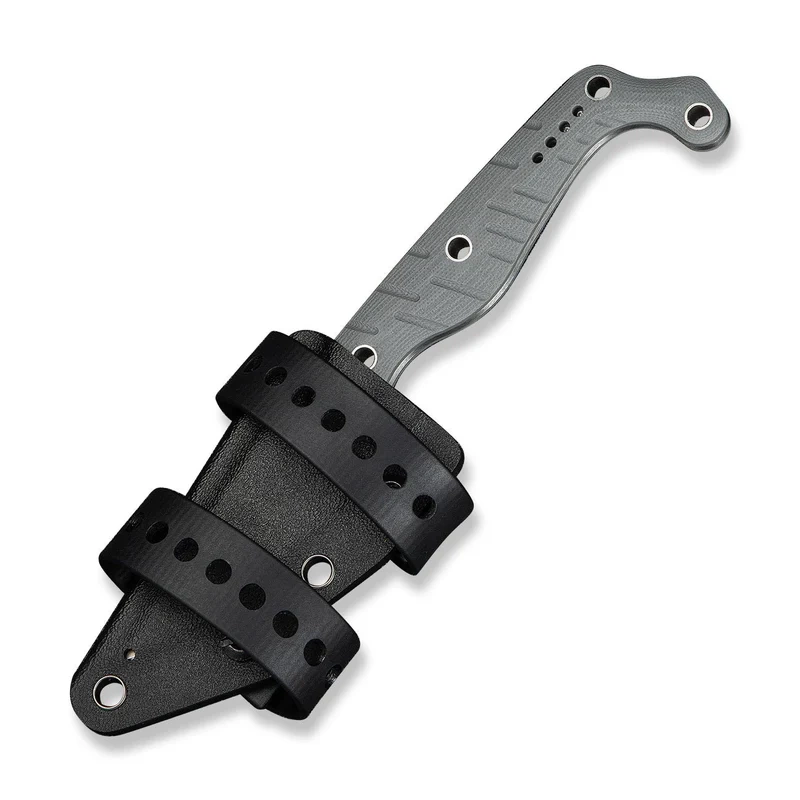 Handle - made of durable G10 composite , known for its resistance to off-road conditions and excellent grip. The textured surface aids grip with gloves or a wet hand, while the ergonomic profiling increases comfort for extended use. The 9mm thickness provides grip stability, and a cord hole allows for paracord attachment or additional security. Equipped with a double-sided clip, which allows different carrying configurations. It comes with a Kydex sheath - resistant to wear, weather and moisture, with straps for trouncing to the belt. This Handle is the perfect combination of functionality, durability and comfort, providing a reliable base for users looking for a reliable fixed blade knife.