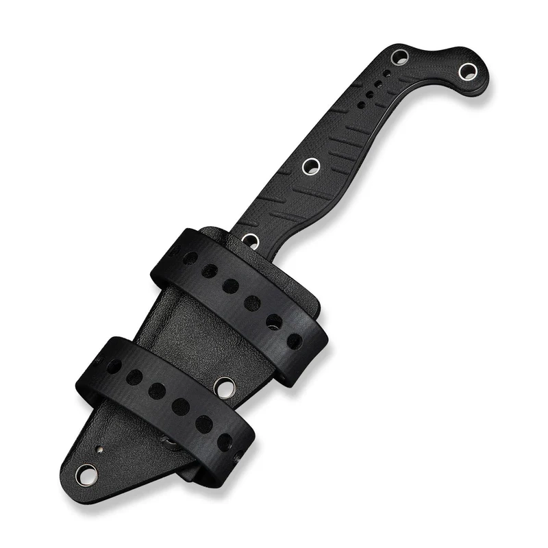 Handle - made of durable G10 composite , known for its resistance to off-road conditions and excellent grip. The textured surface aids grip with gloves or a wet hand, while the ergonomic profiling increases comfort for extended use. The 9mm thickness provides grip stability, and a cord hole allows for paracord attachment or additional security. Equipped with a double-sided clip, which allows different carrying configurations. It comes with a Kydex sheath - resistant to wear, weather and moisture, with straps for trouncing to the belt. This Handle is the perfect combination of functionality, durability and comfort, providing a reliable base for users looking for a reliable fixed blade knife.