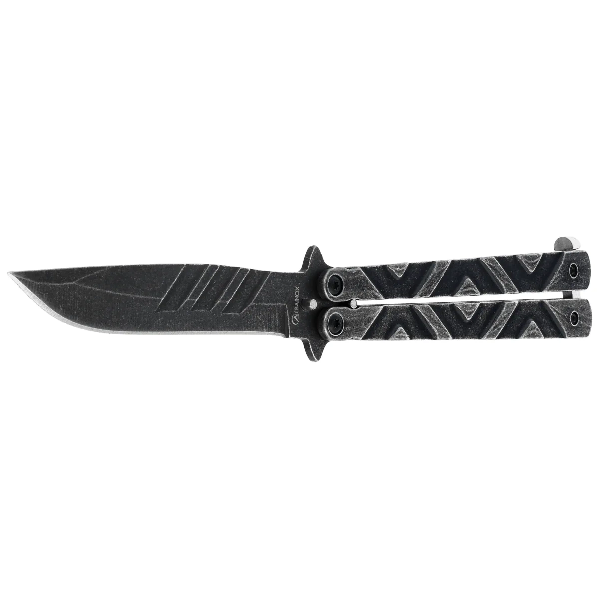 - Stone Gray Steel, Gray Stonewashed – a classic balisong butterfly knife from Martinez Albainox with an all-steel construction, stonewashed finish, and symmetrical geometry. A stylish and durable choice for collectors and enthusiasts of display knives.