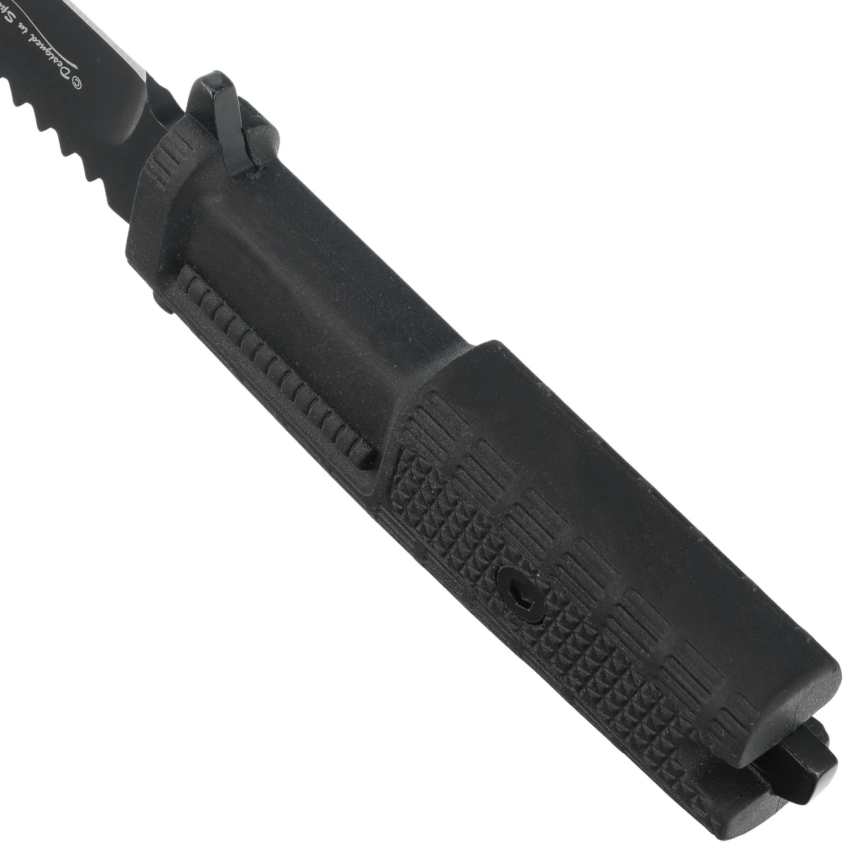 Handle - made of black rubber, provides a secure grip, even in adverse weather conditions. The texture and profiling support the control of the tool during prolonged work, regardless of whether the user operates with bare hands or gloves. The shape of the Handle has been optimized for ergonomics, which reduces fatigue while working. At the end there is a hole for a rope, allowing the tool to be secured against loss. It comes with a sturdy sheath made of nylon, equipped with a clasp and a system for attaching it to a belt or a fall armor. This is a tool made for those who want functionality and durability without compromise.