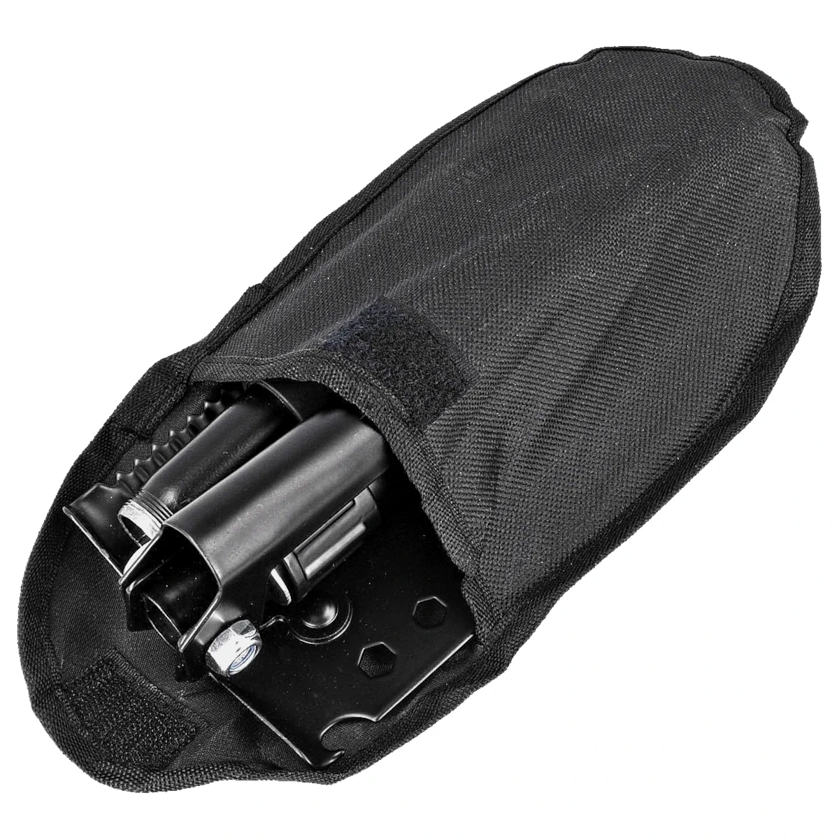 Handle is made of black stainless steel, which guarantees maximum resistance to deformation and structural rigidity when working under load. Thanks to the thickened ABS plastic handle, the user gets a comfortable working position with both hands, which translates into better control and greater efficiency, regardless of the type of task at hand. The handle's design is resistant to off-road conditions, allows comfortable operation even with gloves, and its form supports ergonomics for prolonged use. The folding handle allows the whole thing to be quickly folded into a compact format for easy storage and transportation. The anti-reflective coating further enhances resistance to mechanical damage. This Handle is designed for functionality and durability in field, survival and rescue applications.