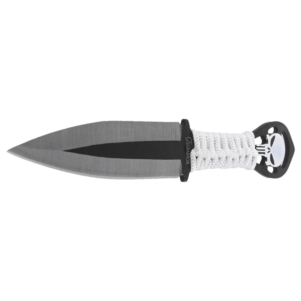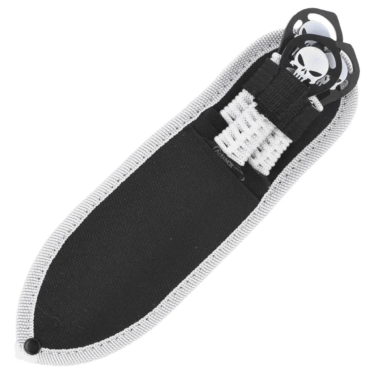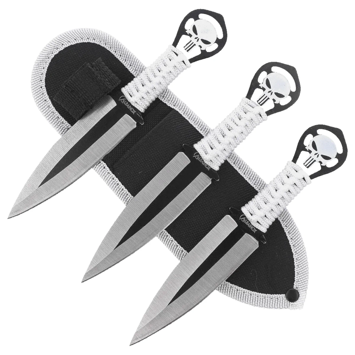- Skulls Set 3 pcs White Cord, Satin 3Cr13Mov - a set of dart throwing knives with full tang construction, made of stainless steel and wrapped in white paracord. Comes with a nylon carrying sheath with compartments.
